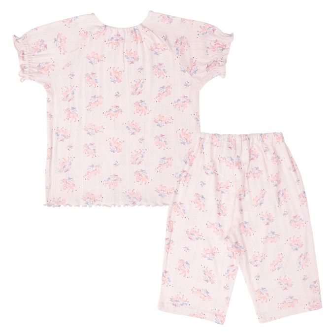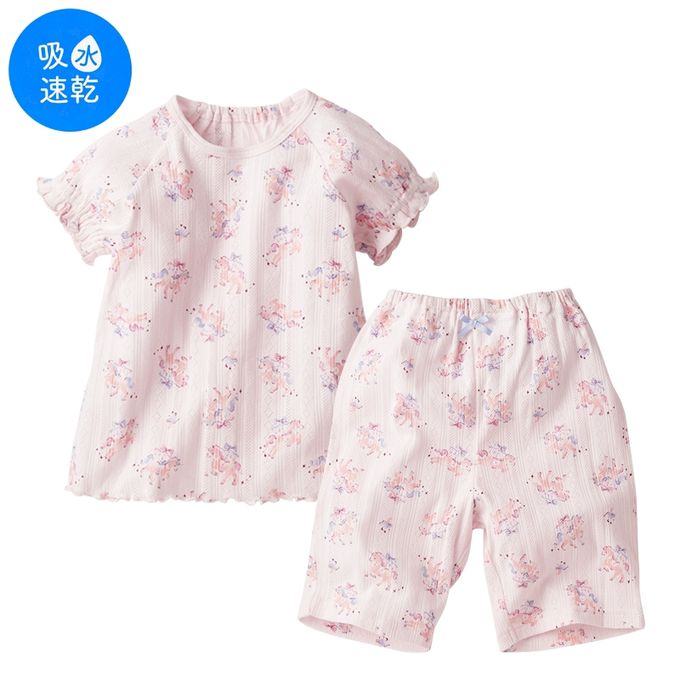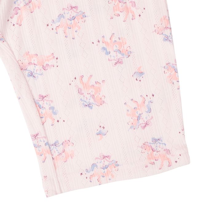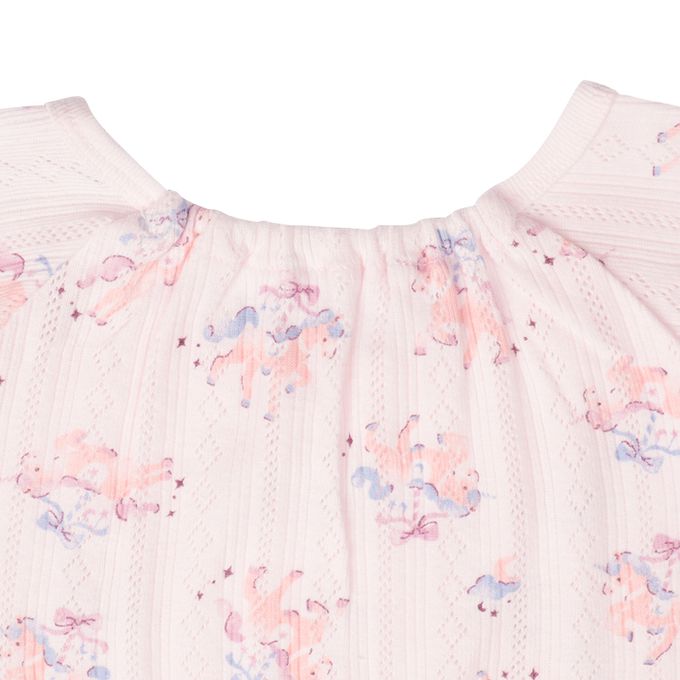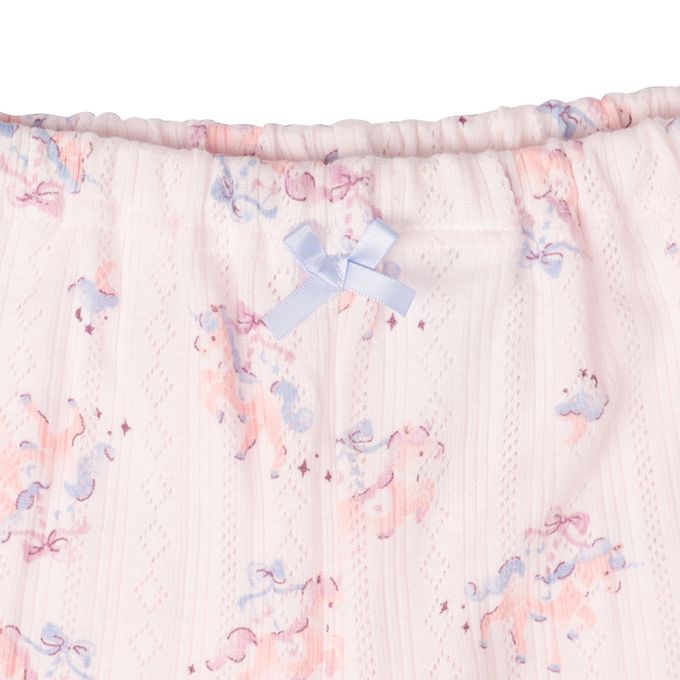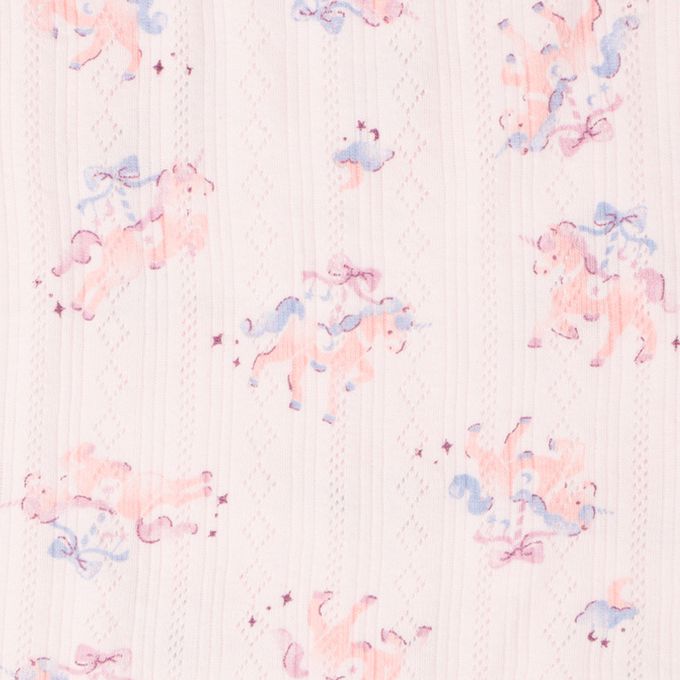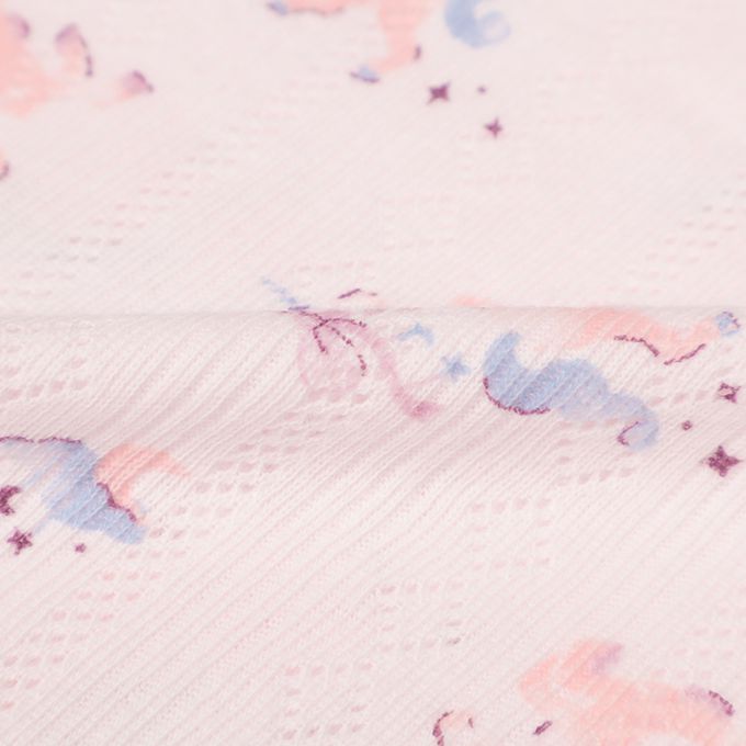 粉紅底色搭配可愛的獨角獸滿版印花圖案。