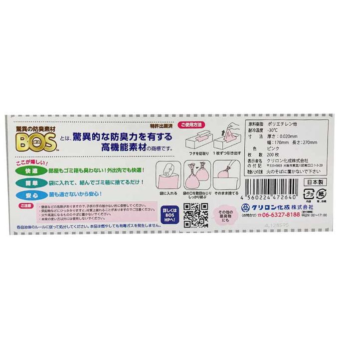 尿布防臭袋BOS SS-200張-粉紅色-日本製