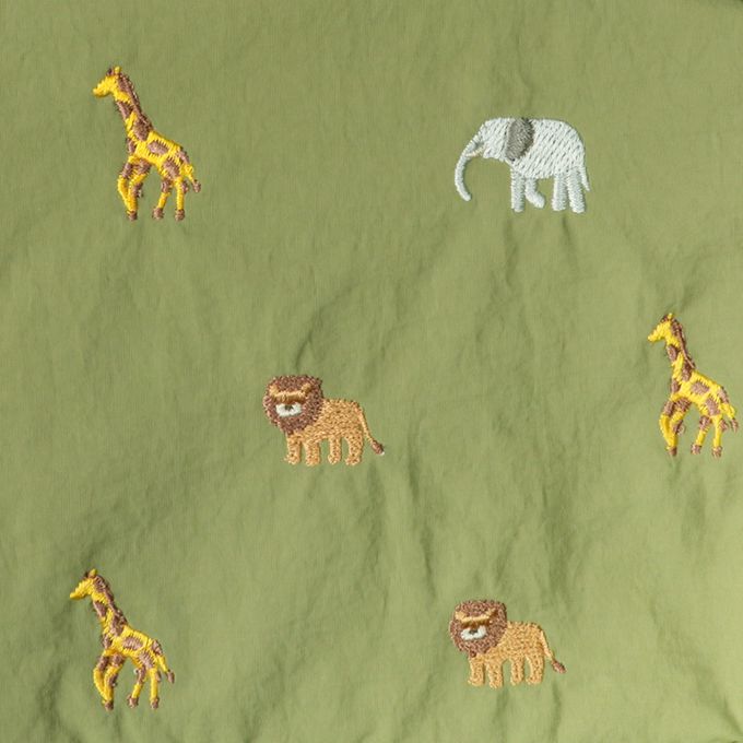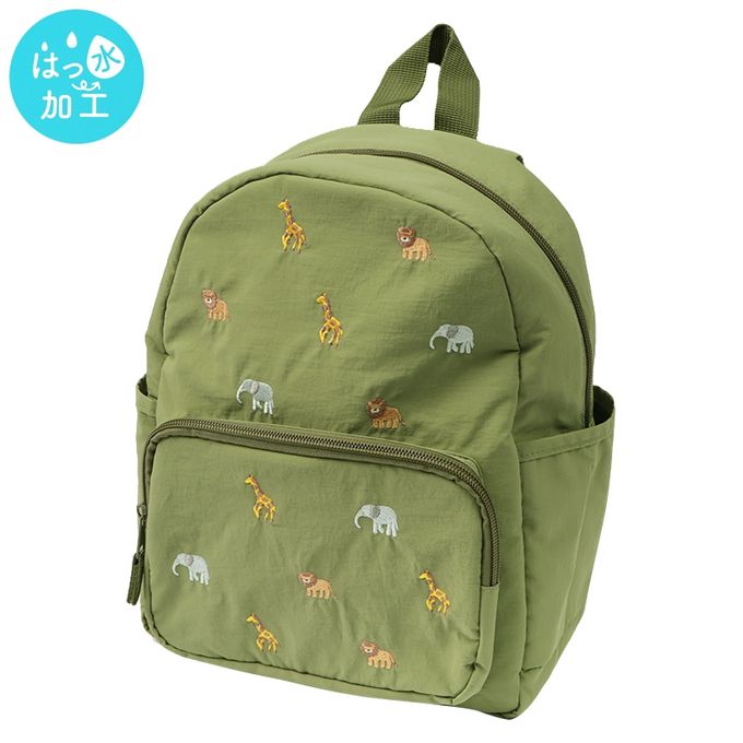不同顏色的背包搭配不同的刺繡圖案。粉紅色款為水果圖案,綠色款為動物圖案,深藍色款為工程車圖案。