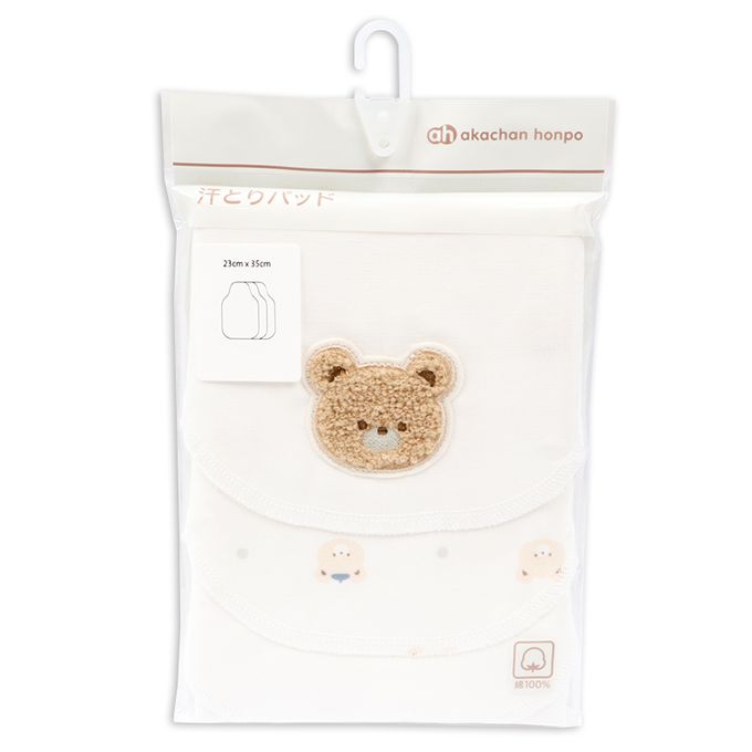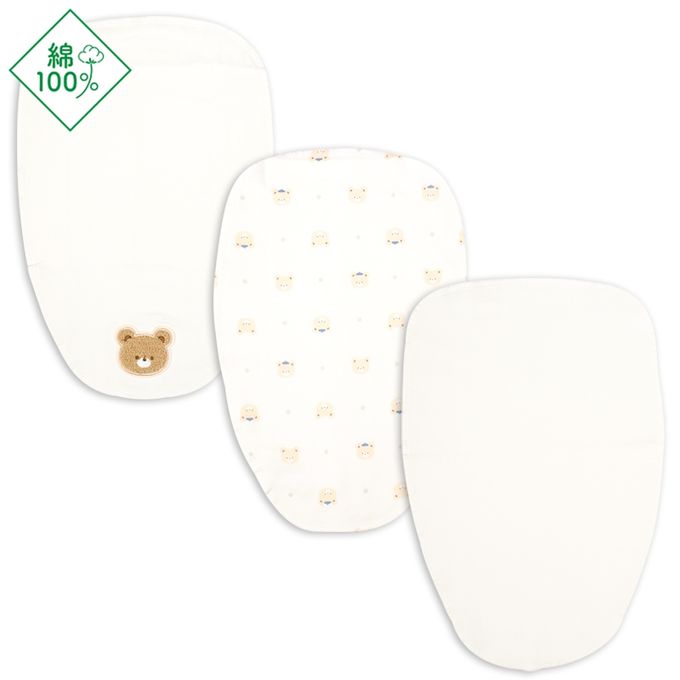 棉紗吸汗襯墊3條入動物-小熊-米白色 (23cm×35cm)
