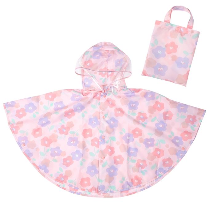 短斗篷式雨衣-小花-粉紅色 (80~95cm)
