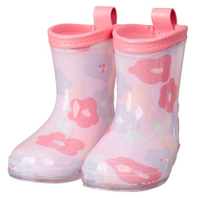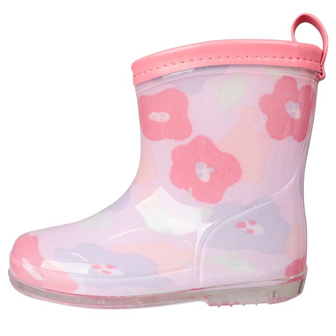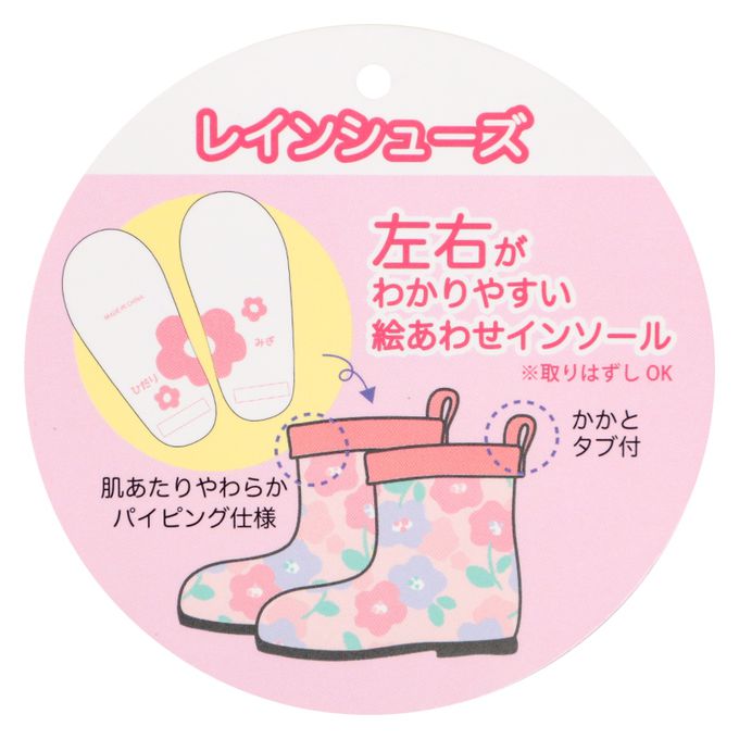 易分左右腳!雨鞋-小花-粉紅色