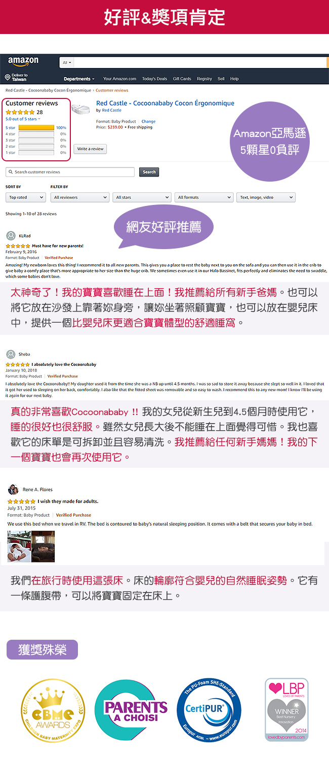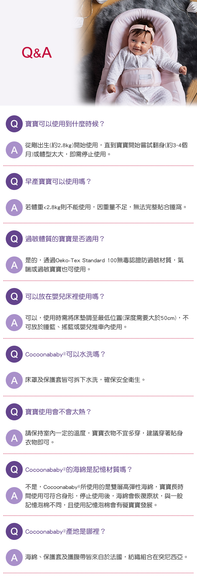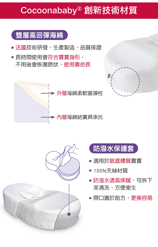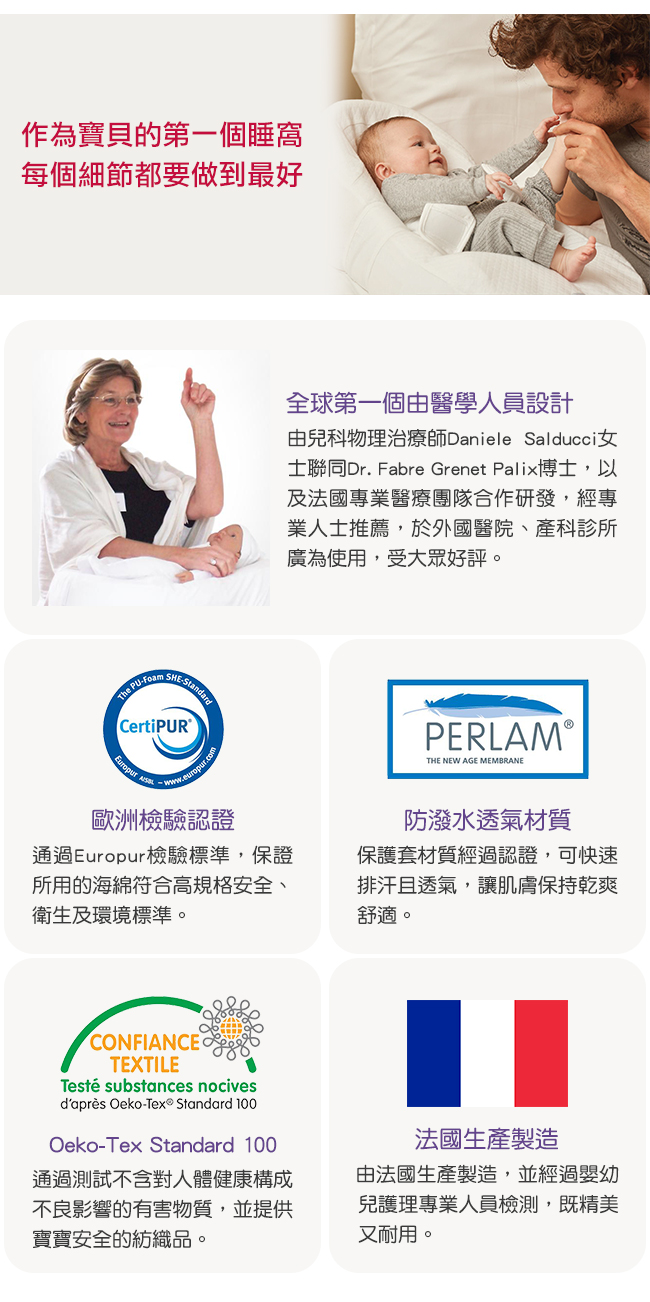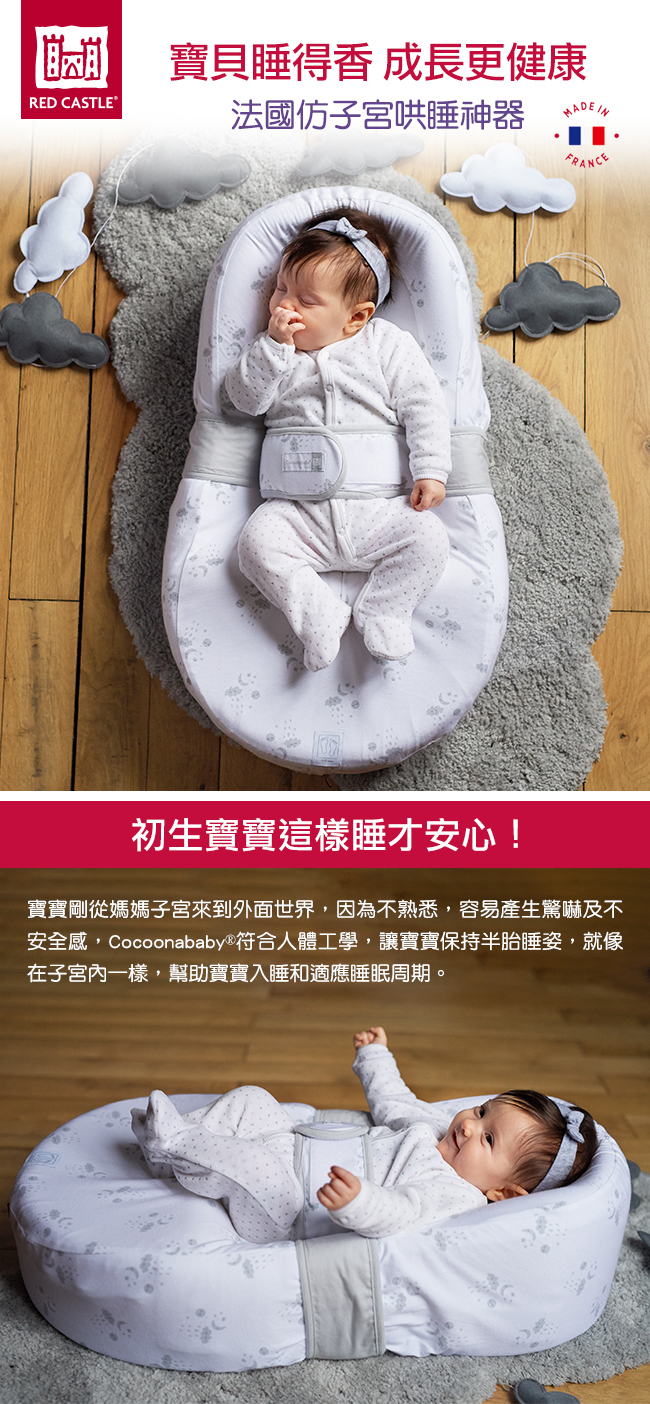 人體工學睡窩給嬰兒帶來甜睡的時刻;適合每一個剛出生的寶寶(體重需2.8kg以上),直至寶寶開始翻身(3-4個月)。符合安全標準,專利產品,醫院研發。