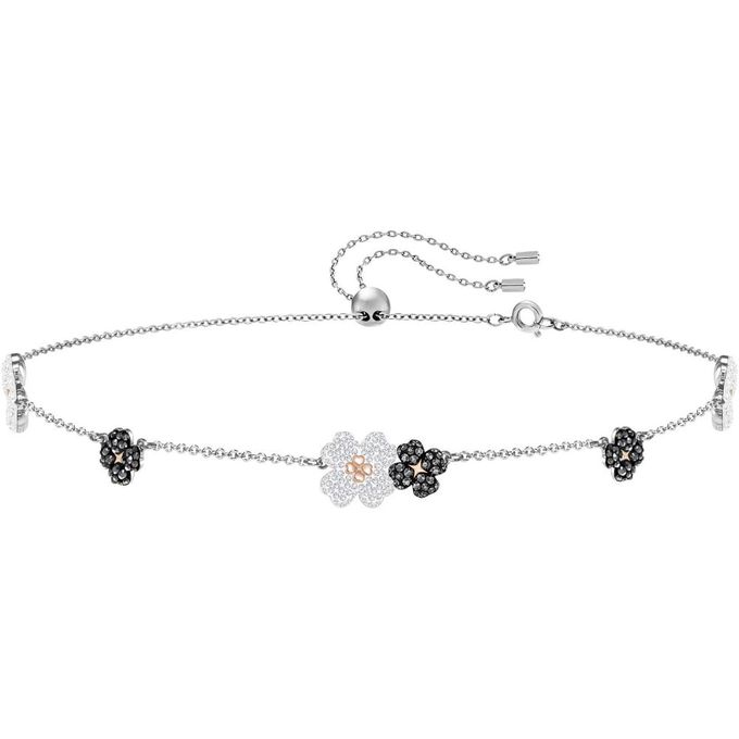 黑白花朵水晶項鍊 (銀色)