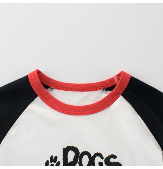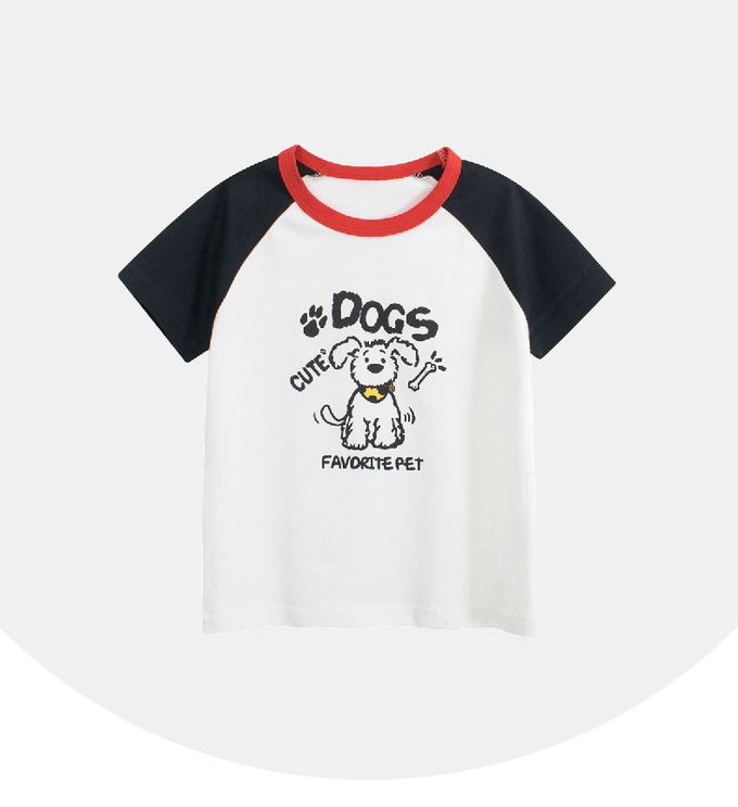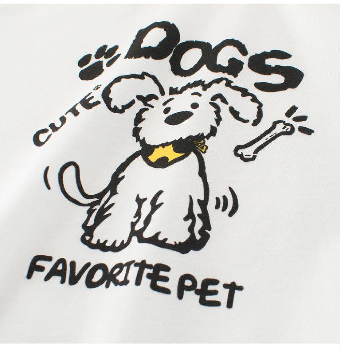 純棉短袖上衣-可愛小狗-米白/黑色