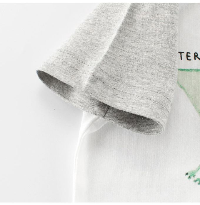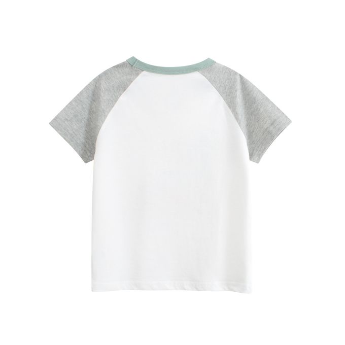 27KIDS - 純棉短袖上衣-藍色笑笑獅-灰綠色