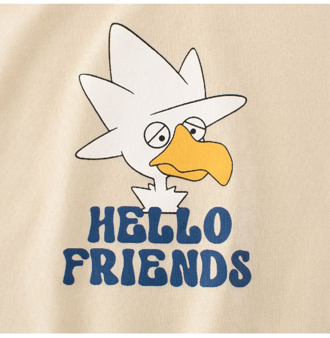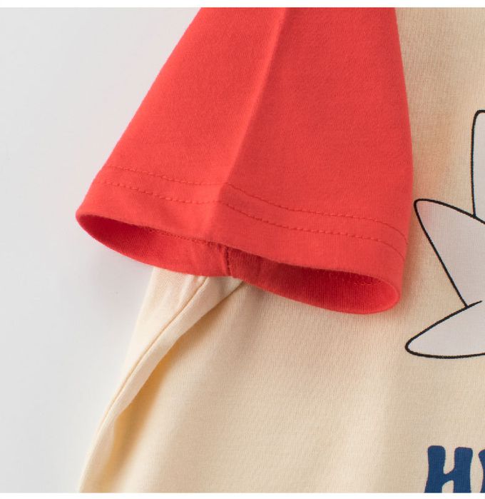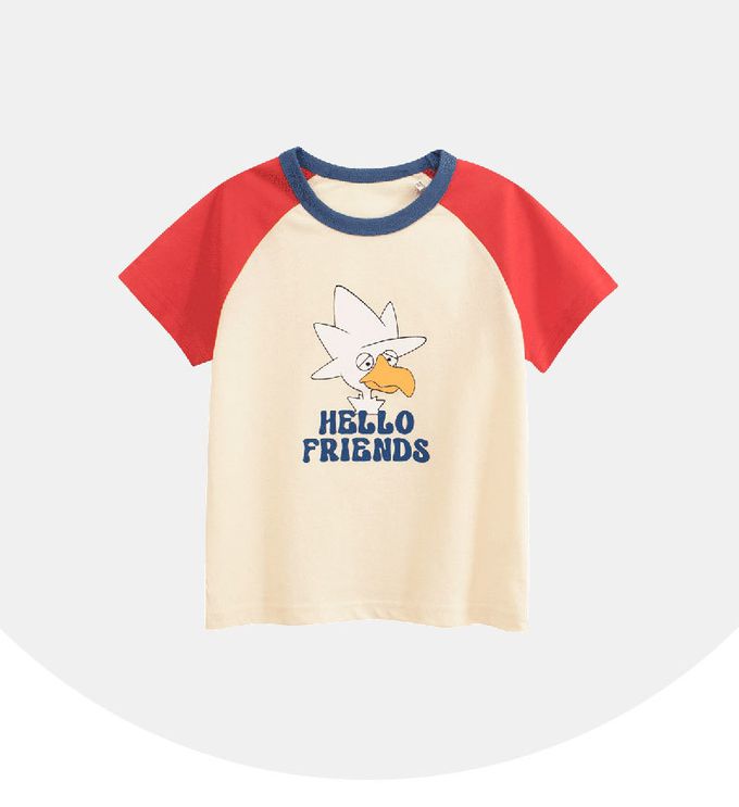純棉短袖上衣-哈囉朋友-米杏/紅