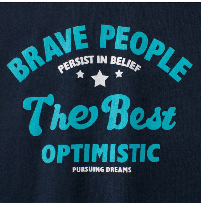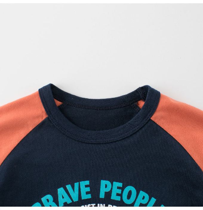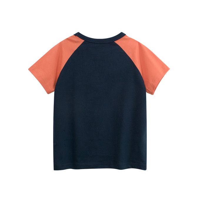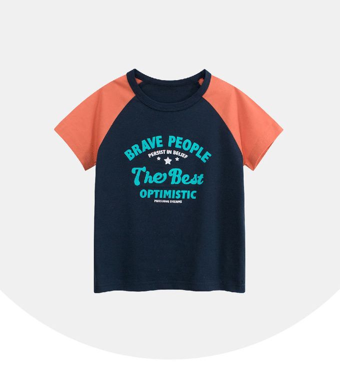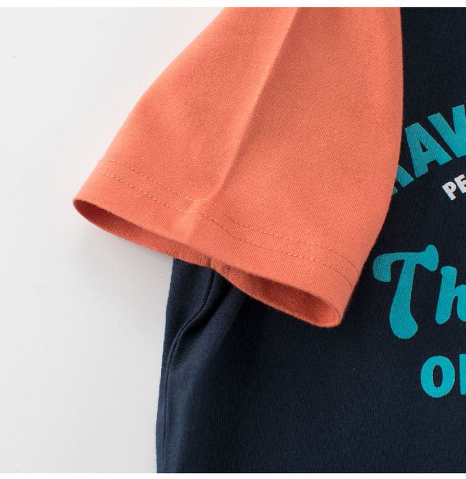 純棉短袖上衣-文字標語-藏青/橘