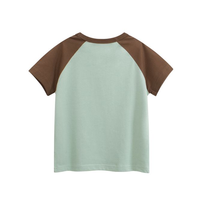 27KIDS - 純棉短袖上衣-藍色笑笑獅-灰綠色