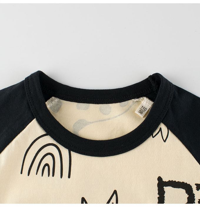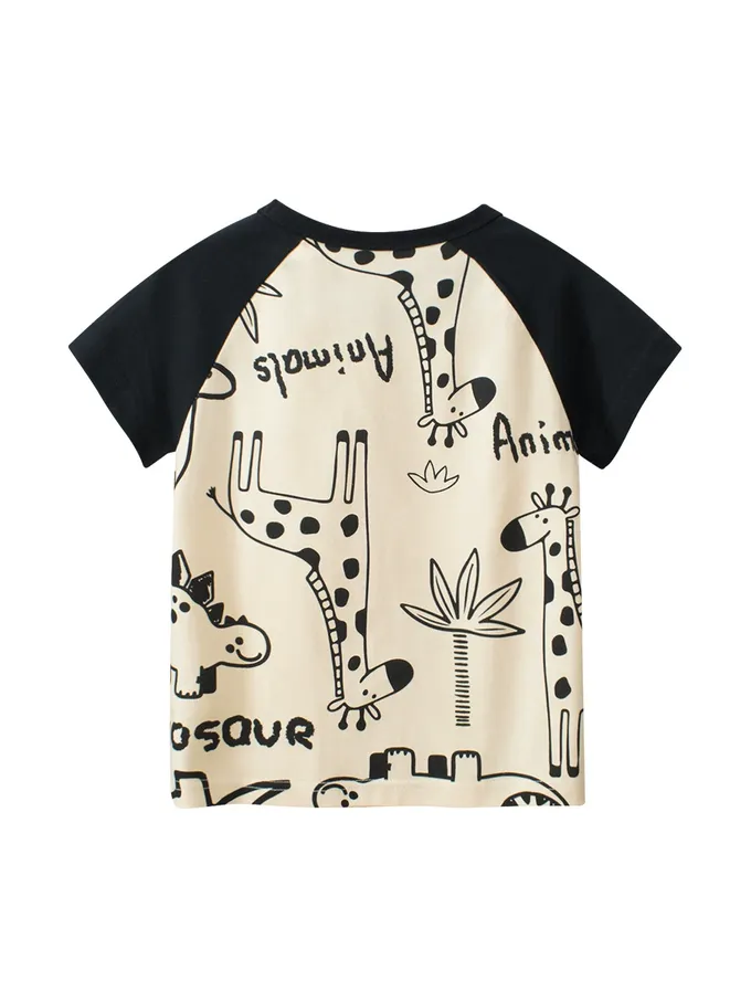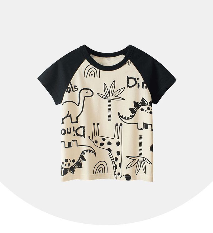 純棉短袖上衣-恐龍塗鴉-米杏/黑