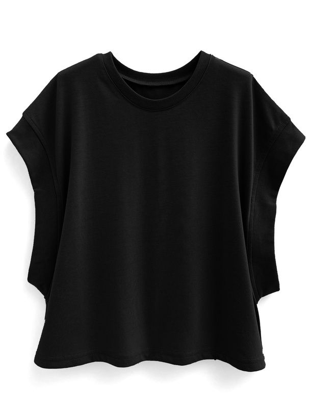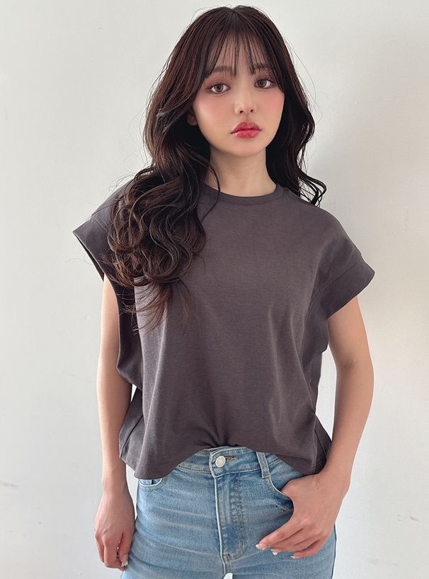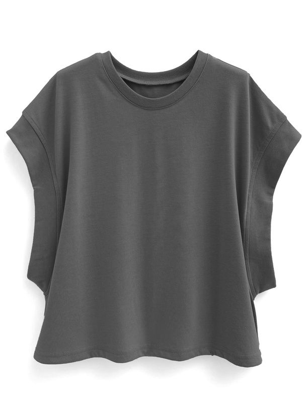 日本 GRL - 大寬袖圓領率性素面上衣-炭灰 (F)