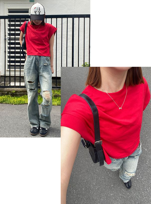 • 簡約寬鬆的設計版型,很適合日常搭配
