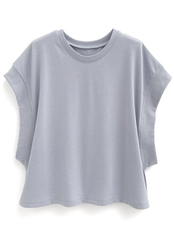 日本 GRL - 大寬袖圓領率性素面上衣-藍 (F)