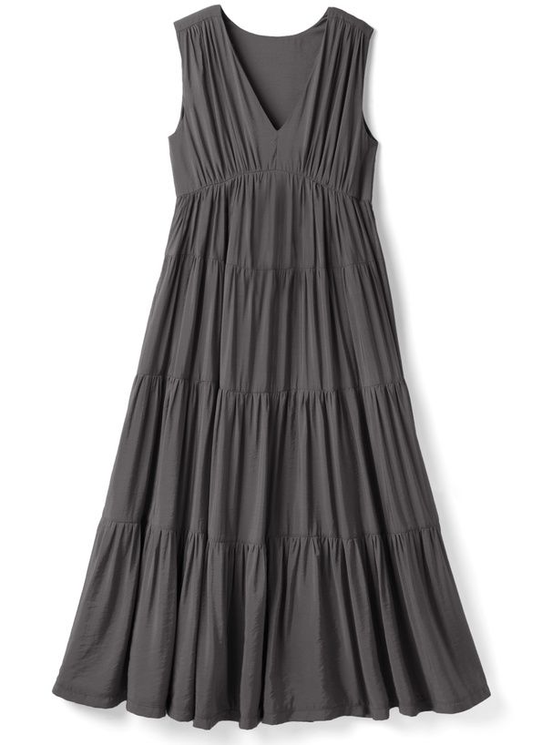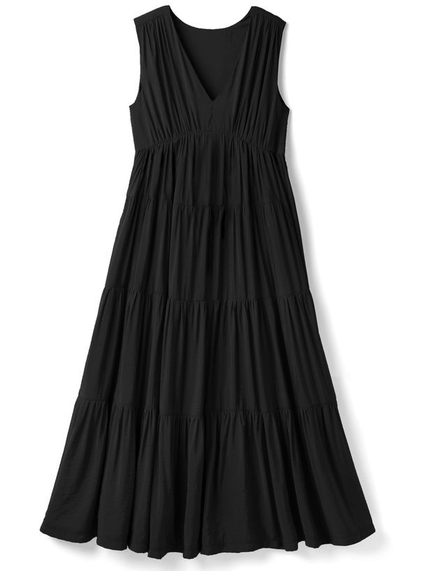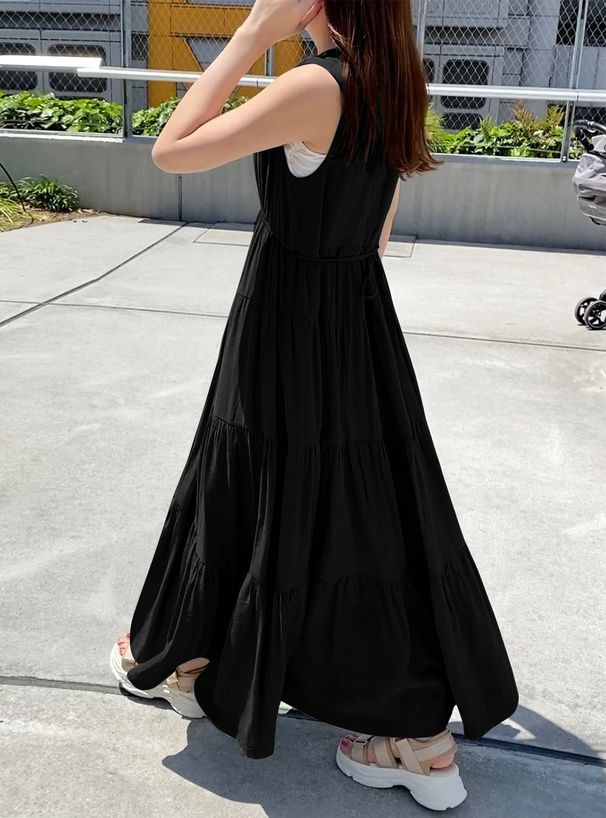 日本 GRL - V領蛋糕層次飄逸背心洋裝-黑色