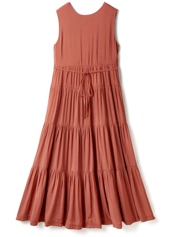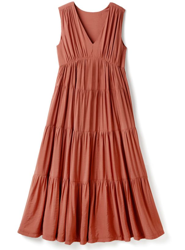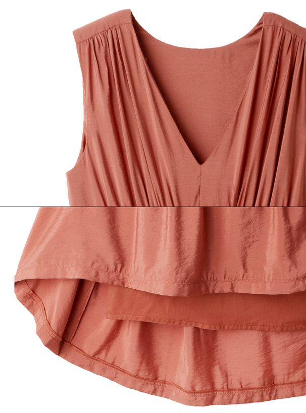日本 GRL - V領蛋糕層次飄逸背心洋裝-卡其粉