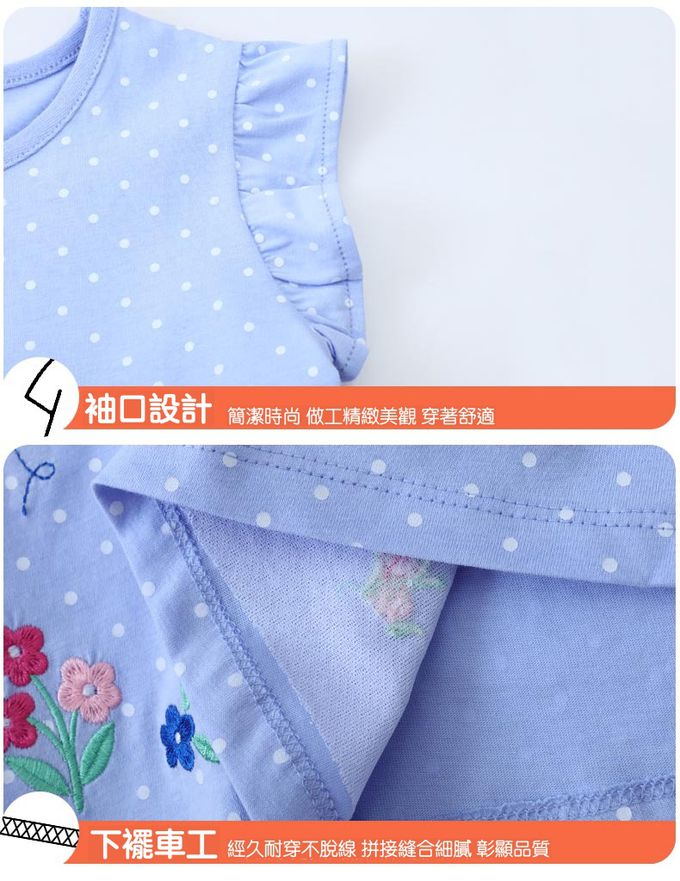 棉質圓領小飛袖洋裝-花卉兔子-藍紫點點