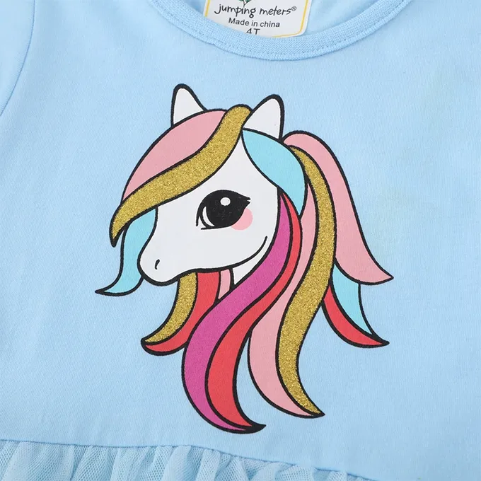 Jumping meters - 棉質圓領短袖網紗洋裝-雜耍獨角獸-粉色