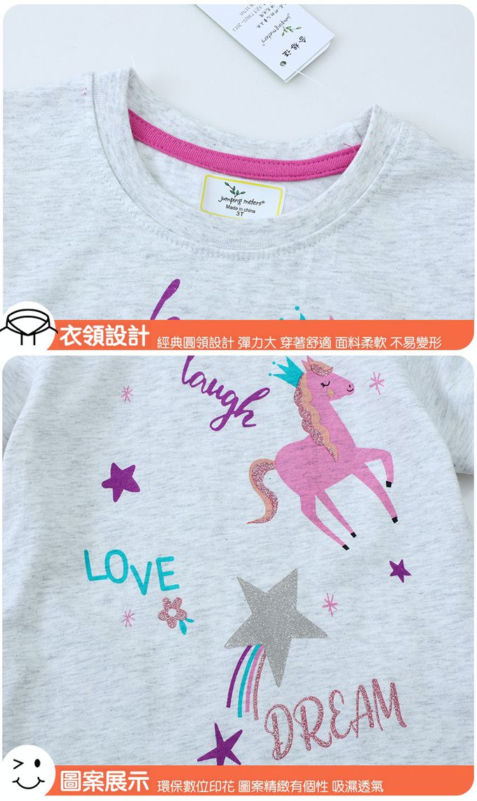 Jumping meters - 棉質圓領短袖上衣-閃耀翅膀獨角獸-粉色