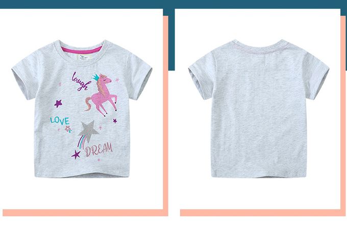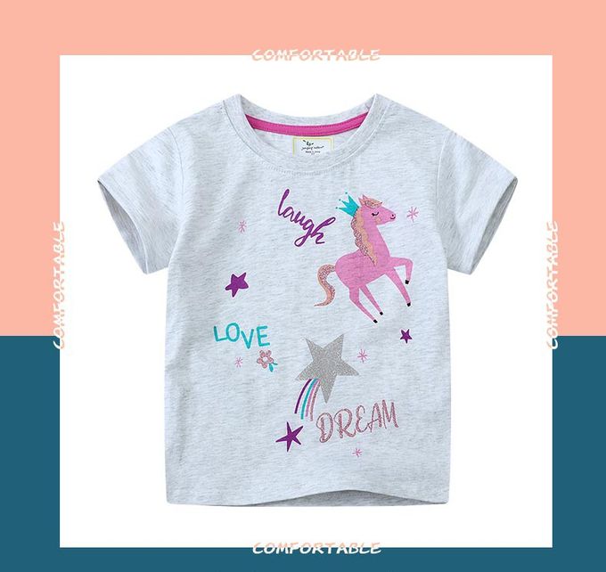 Jumping meters - 棉質圓領短袖上衣-夢境獨角獸-灰色