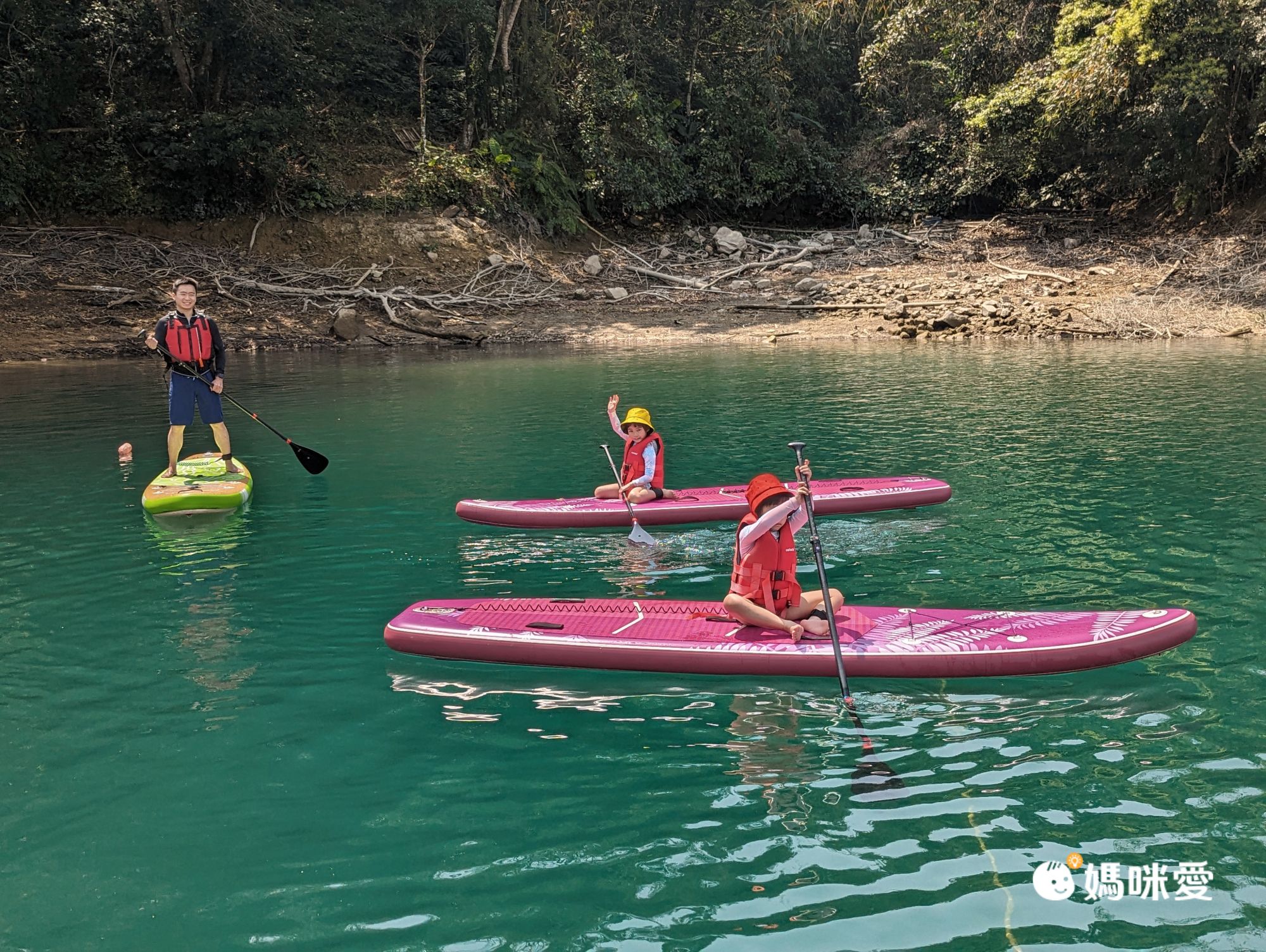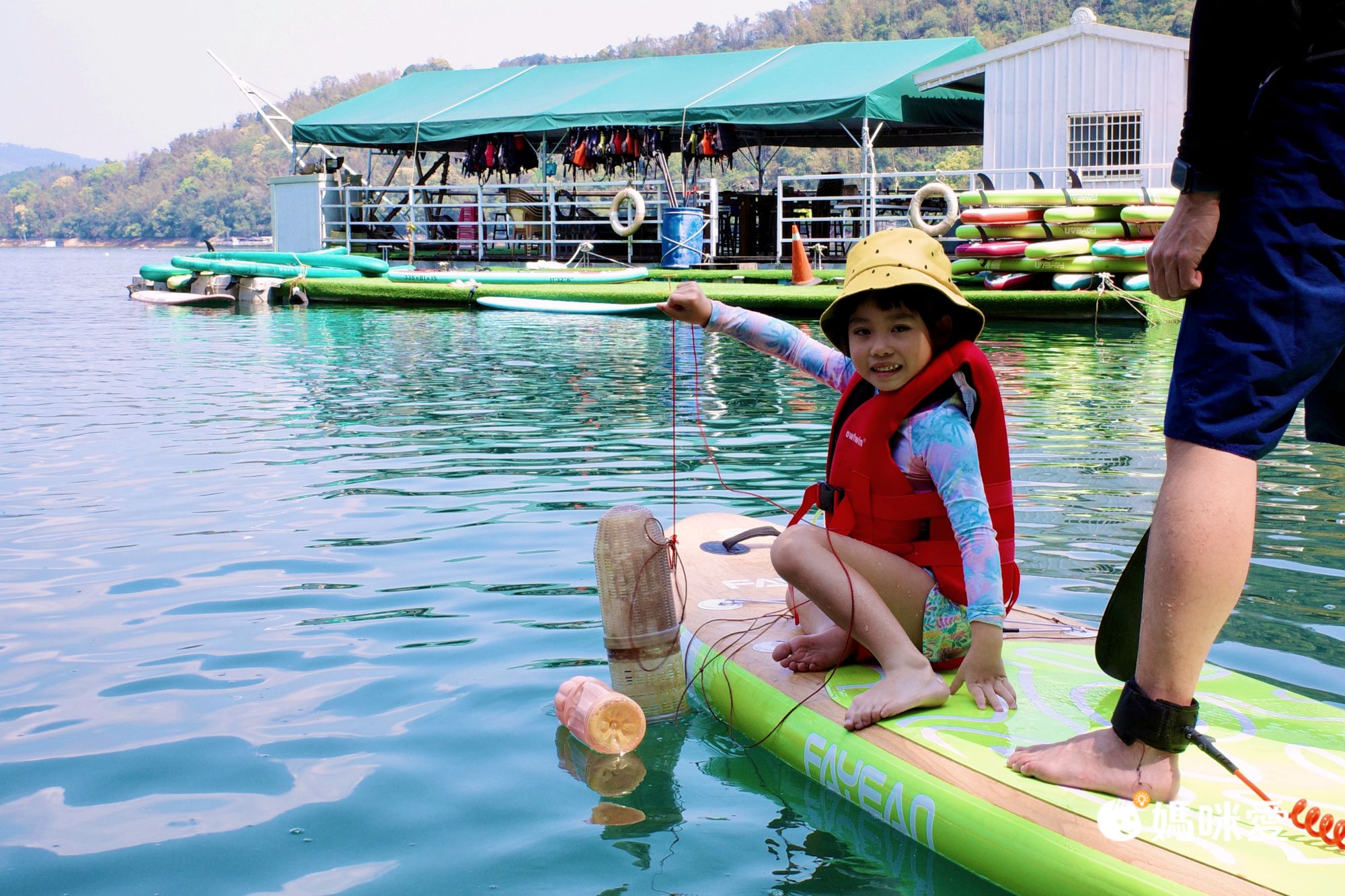 我們家就在南投縣,其實離日月潭不太遠,叮噹兩姐妹對日月潭的傳說故事以及周邊的小吃攤都非常熟稔(非常推薦水社碼頭的杏鮑菇大王,是我們家的療癒美食,夫妻吵架後老公就會立馬驅車日月潭買一包求和),不過我們總是在熱鬧的水社,也從來沒有試過水上活動,這次有機會參加立槳體驗,真的是開了一扇新世界的大門!