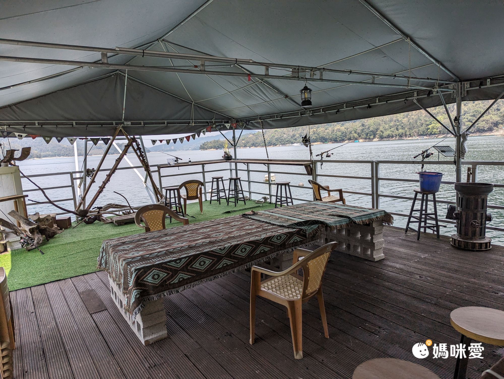 教練也在船屋架設了好幾副釣竿,他告訴叮噹這邊有一隻傳說中的草魚,比一個叮噹還要大,他們已經跟牠對峙了好幾個月,希望今天就能把草魚釣上來!雖然我們最後沒有釣到半隻魚,但等待傳說中的大魚上勾那個過程是很棒的,又期待,又悠哉,初次解鎖了垂釣的樂趣呀。