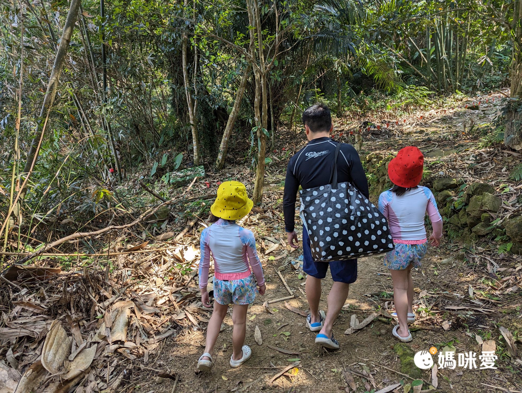 朝境方舟的入口處非常隱密甚至沒有指標,一開始就充滿了神秘感,讓叮噹對於秘境非常地期待,我們從google map上「日月潭頭」的定位點,循教練的指示停好車,走進了神秘的小森林,教練一邊介紹說這裡會出現猴群、那裡是以前蔣中正狙擊手的碉堡,讓兩位叮噹興奮極了。