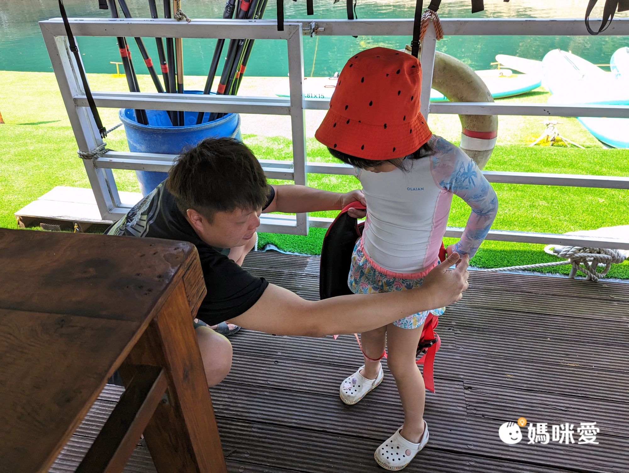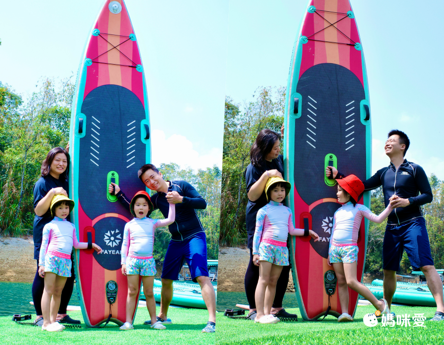 一開始我們是一大帶一小,熟悉一下在水上的感覺,全程教練都會在附近指導、幫我們拍照!讓我們可以專心在當下練習平衡~