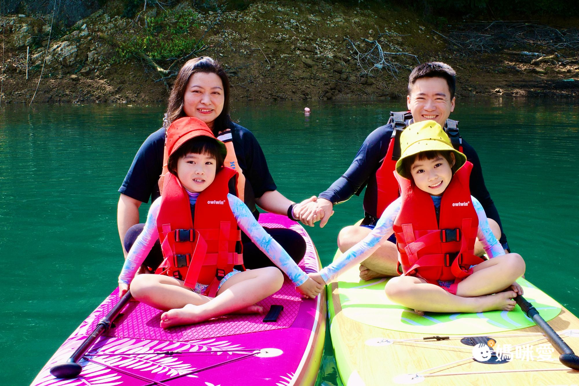 依照購買專案內容,可體驗兩大一小/兩大兩小/三大日月潭SUP課程(1.5小時),全程有專業教練教學與攝影側拍紀錄留念(不含空拍機拍攝)、還有生態導覽!非常超值!