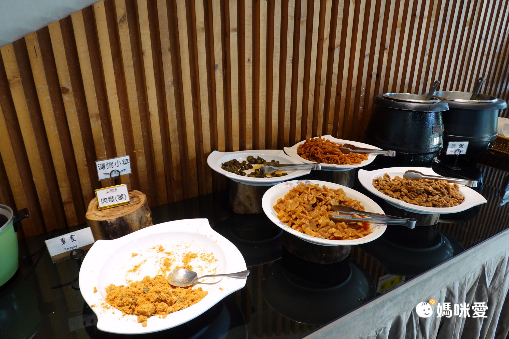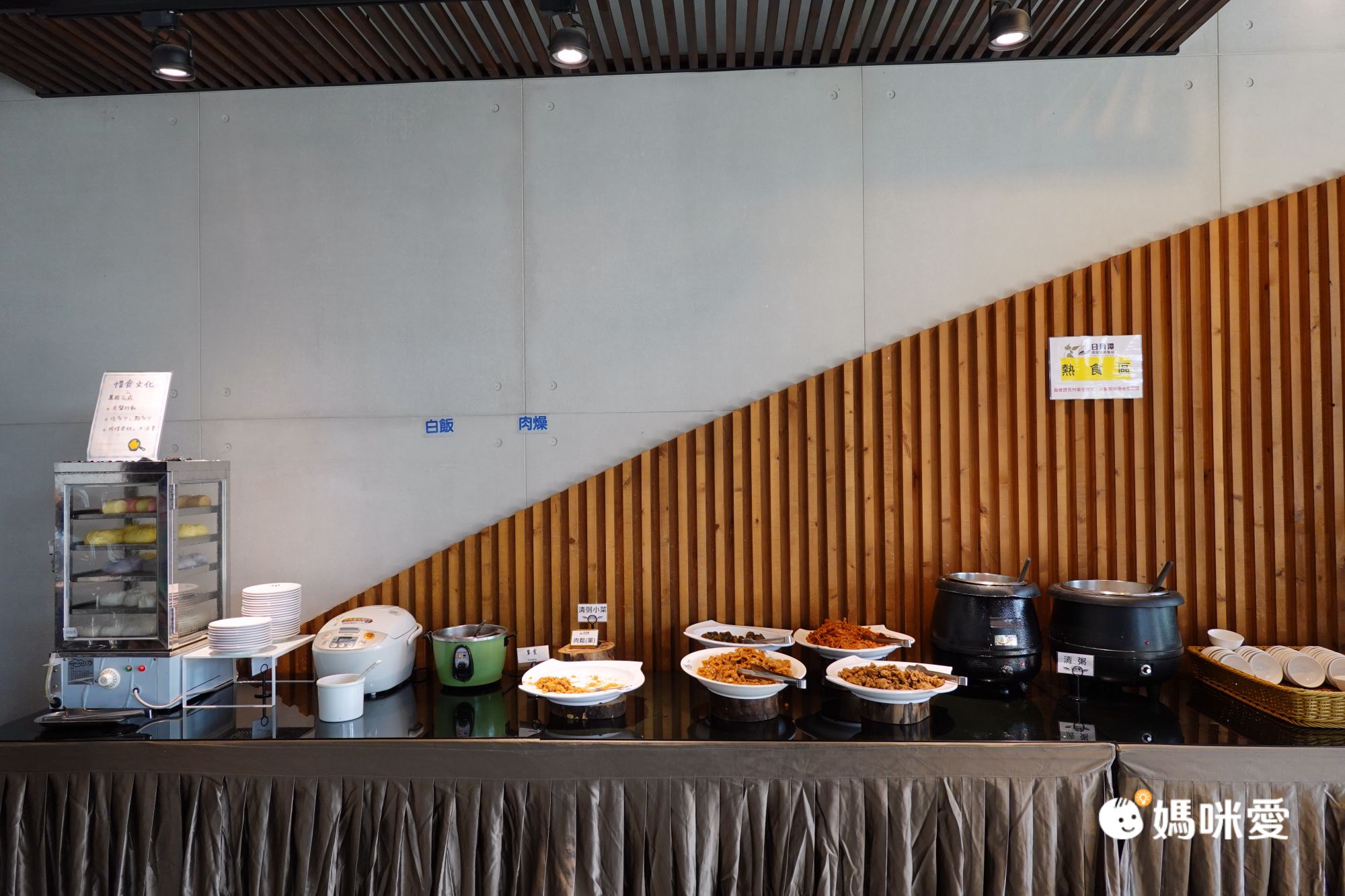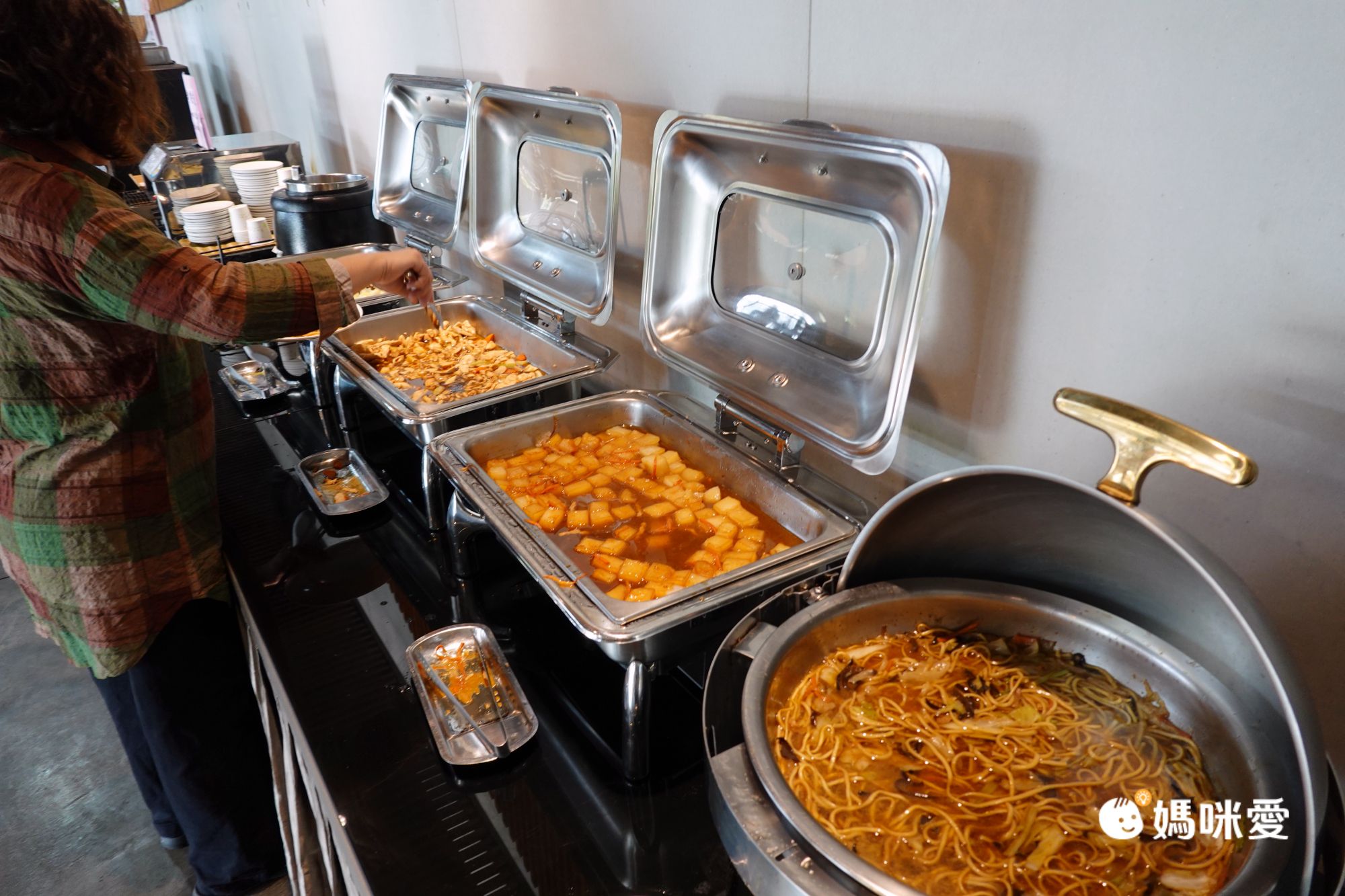 種類中西式都有,有白粥、饅頭、麵包和各種炒蔬菜,而且還有自己可以動手煮的切仔麵喔!飲料也有很多選項,咖啡、豆漿、奶茶等等,想喝什麼吃什麼都可以自行取用!