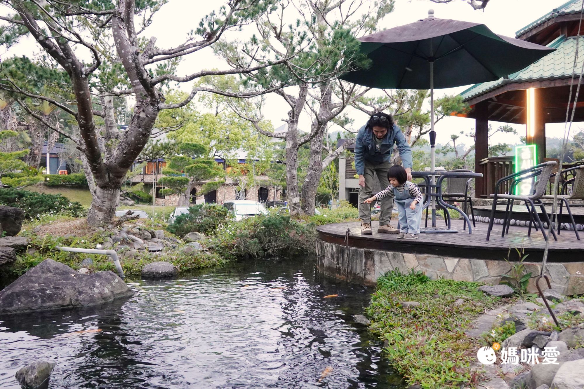 日月潭瑞居渡假飯店的腹地超大,開車來還可以直接停飯店門口的停車格!一開進來真的有點傻眼哈哈!這實在對開車一族超級友善,而且不用收費喔!而且飯店正門口還有個小涼亭可以讓小朋友餵魚!