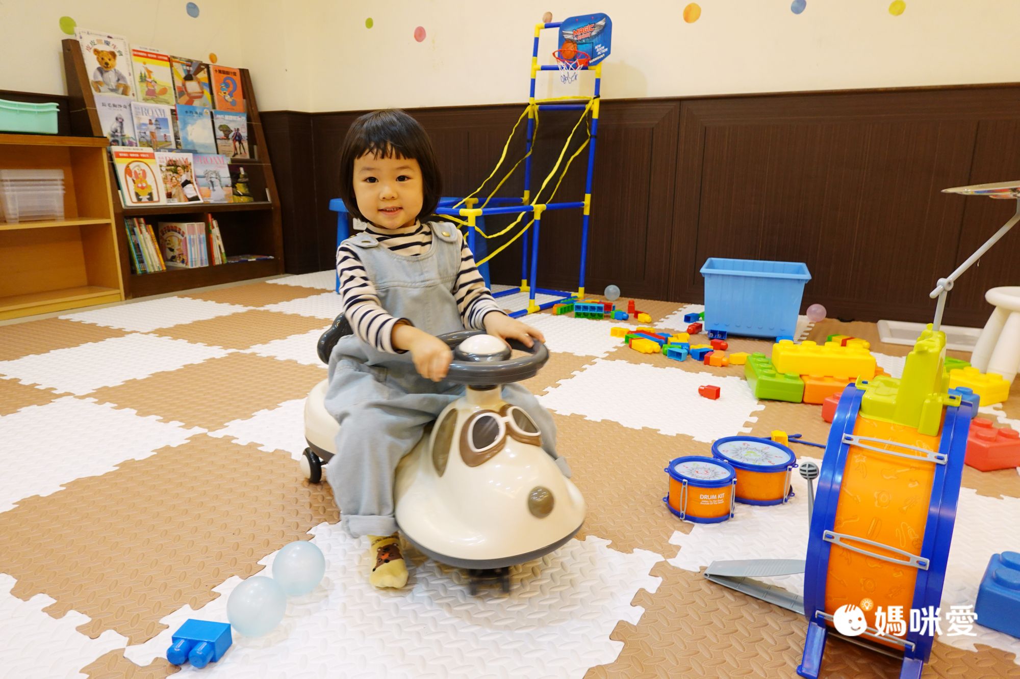 CHECK IN完,我們就帶柳橙到樓下兒童遊樂區,她非常忙碌的跑來跑去,一下玩扮家家酒、一下又騎車到處繞,玩到後來要強行帶走才能去吃午餐啊…