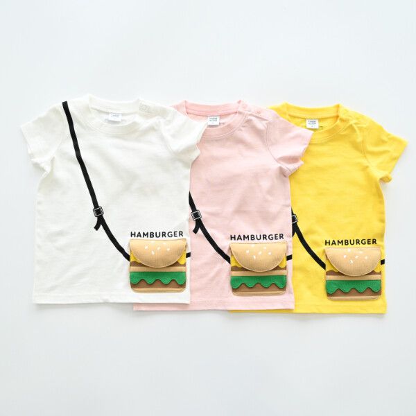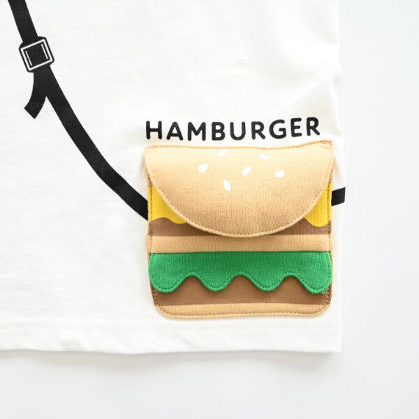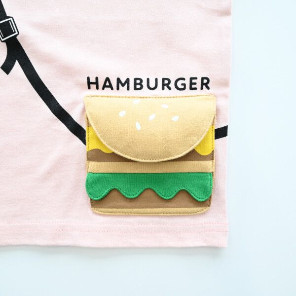 日本 Baby Room - 童趣翻翻短袖上衣-漢堡口袋-黃