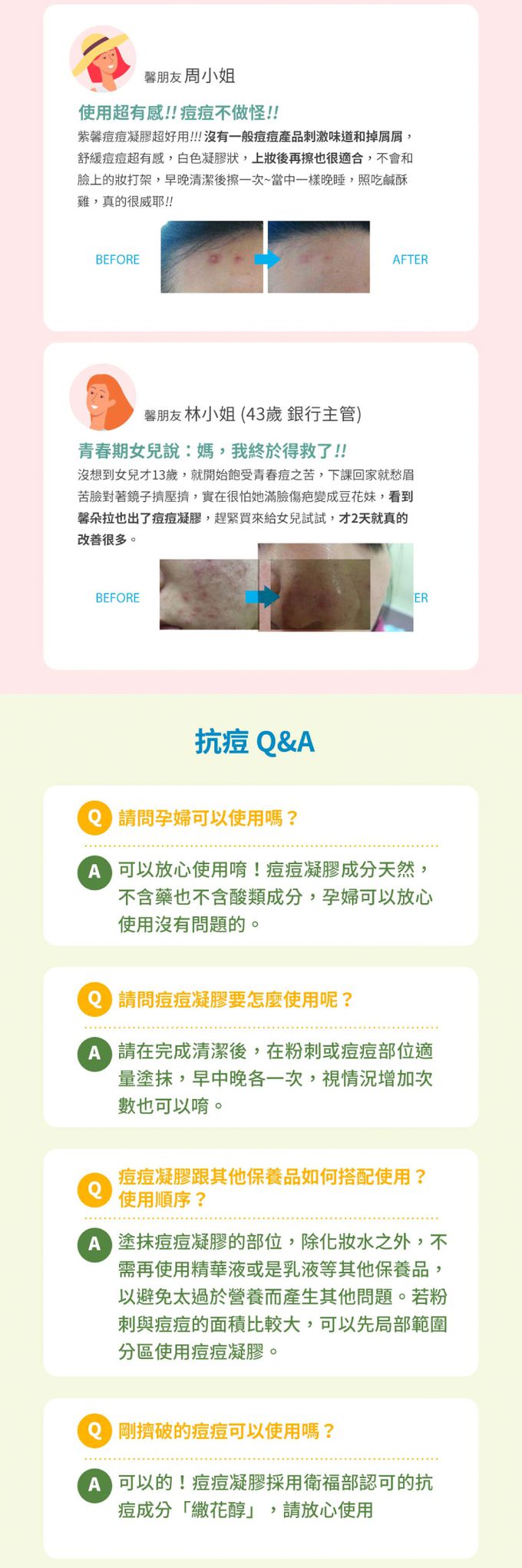使用方法:使用前,請先將肌膚清潔乾淨,以棉花棒取適量點塗抹於粉刺、痘痘、暗沉處。可適痘痘狀況,一日數次使用無妨。使用步驟為清潔後、保養品前。