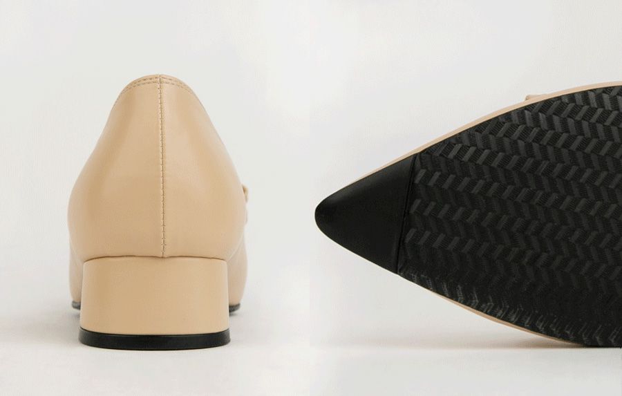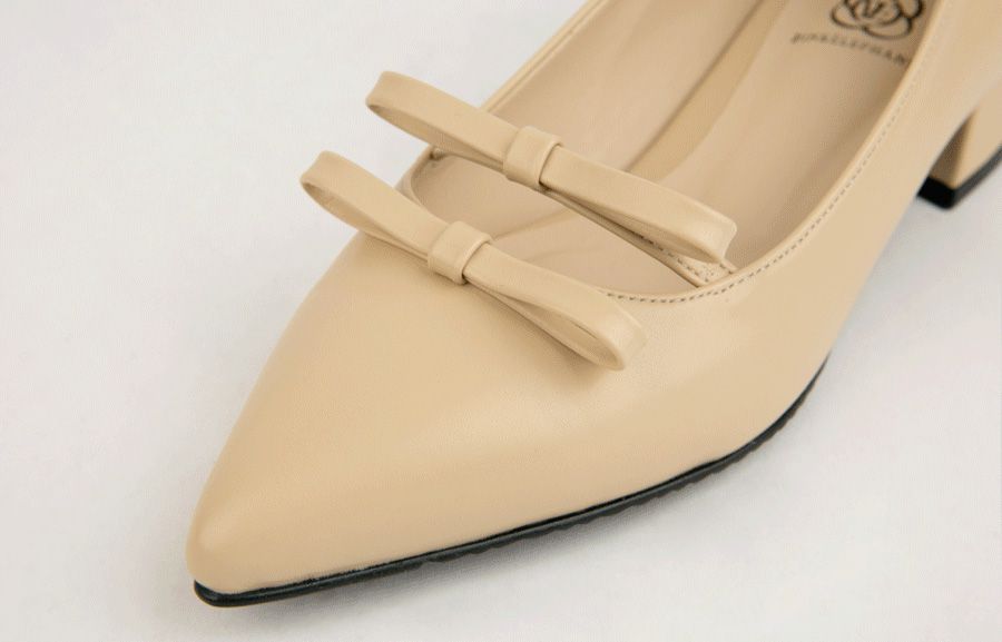 韓國 PINKELEPHANT - 優雅雙蝴蝶結軟皮革尖頭跟鞋(3cm)-裸粉