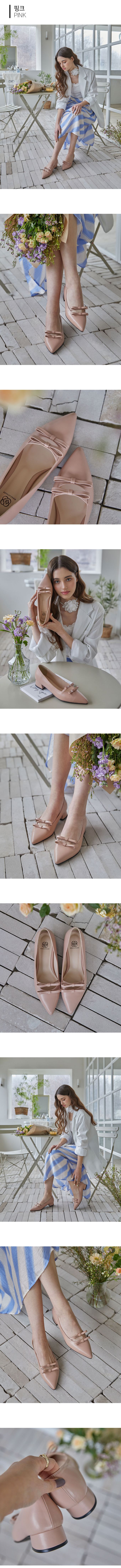 • 品名:優雅雙蝴蝶結軟皮革尖頭跟鞋(3cm)