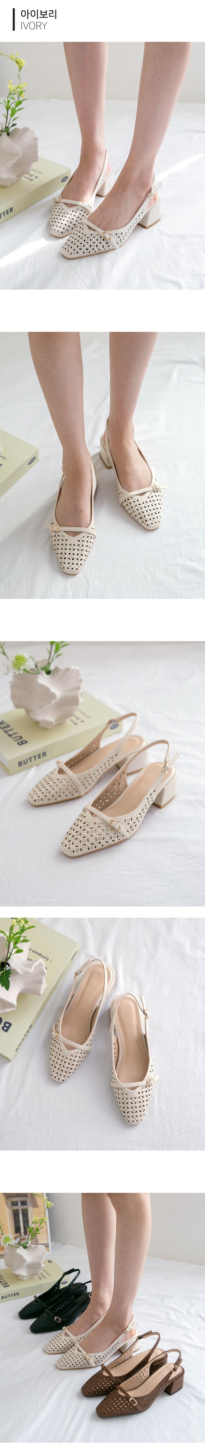 韓國 PINKELEPHANT - 復古鏤空包頭粗跟涼鞋(6cm)-象牙白