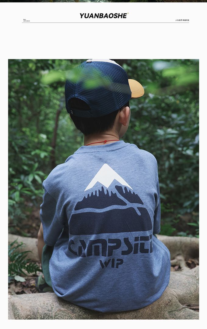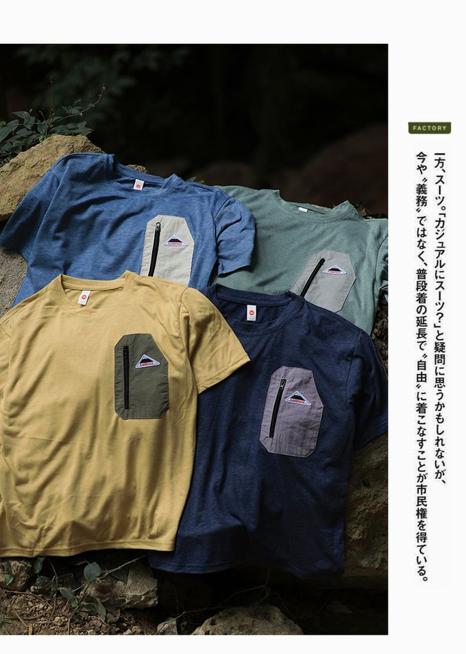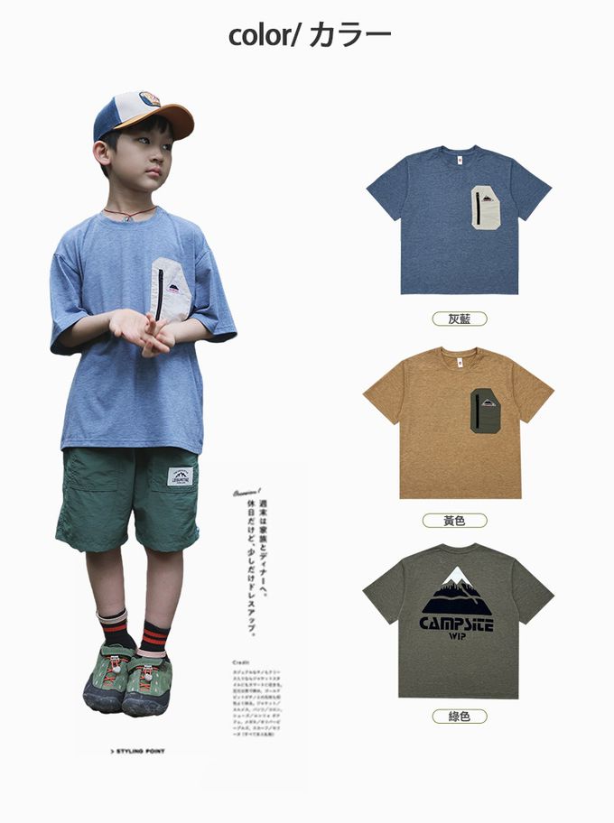Y B S - 吸濕快乾圓領短袖上衣-前口袋後印花-灰藍