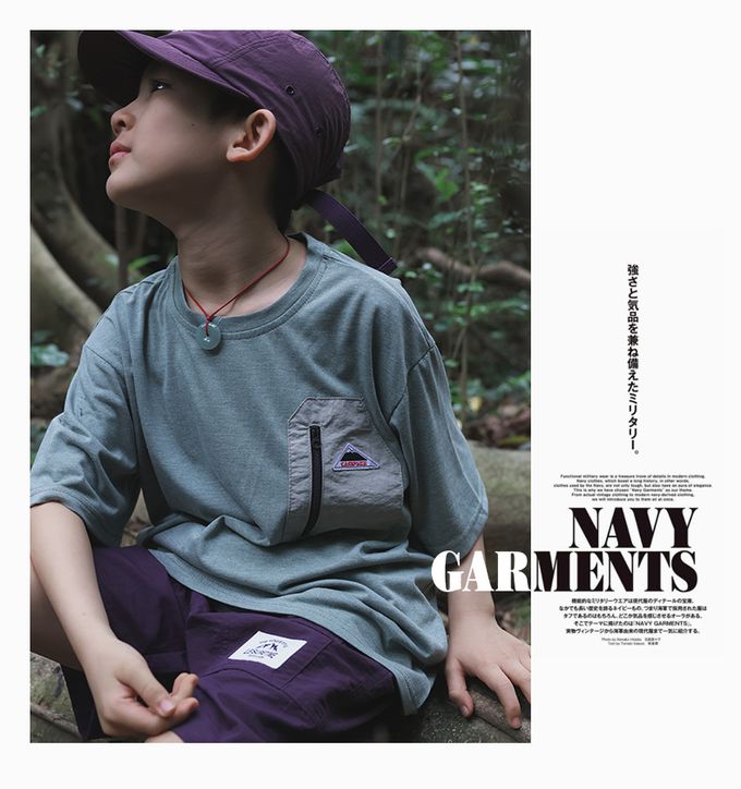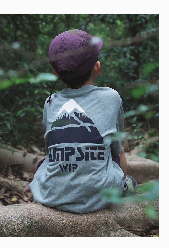 Y B S - 吸濕快乾圓領短袖上衣-前口袋後印花-灰藍