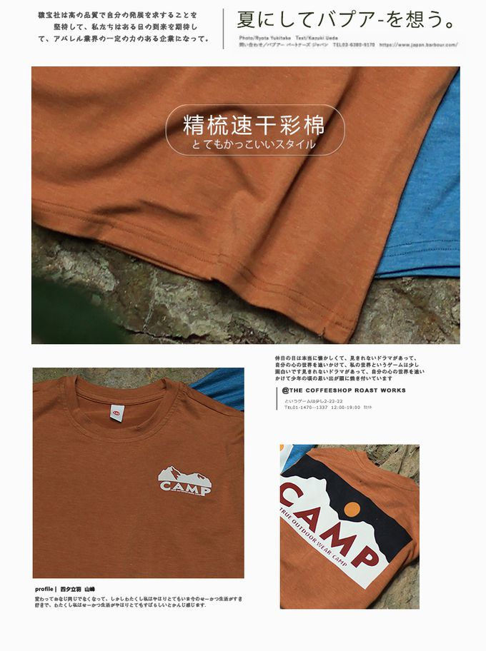 吸濕快乾圓領短袖上衣-日落雪山-焦糖棕