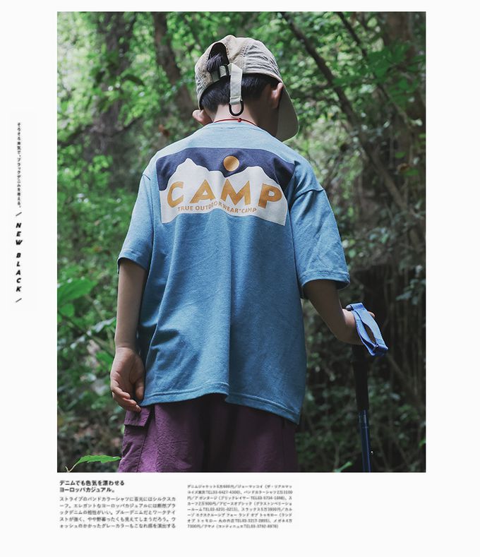 Y B S - 吸濕快乾圓領短袖上衣-前口袋後印花-灰藍
