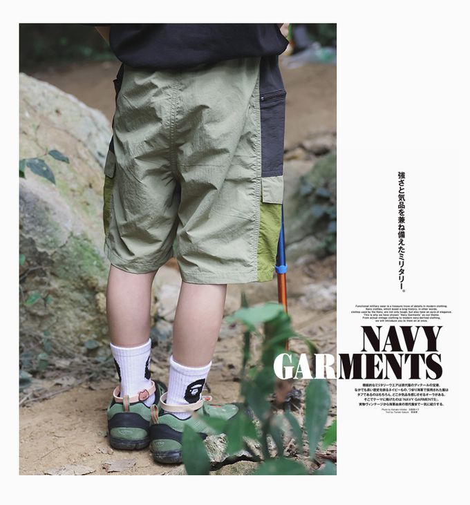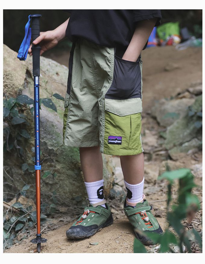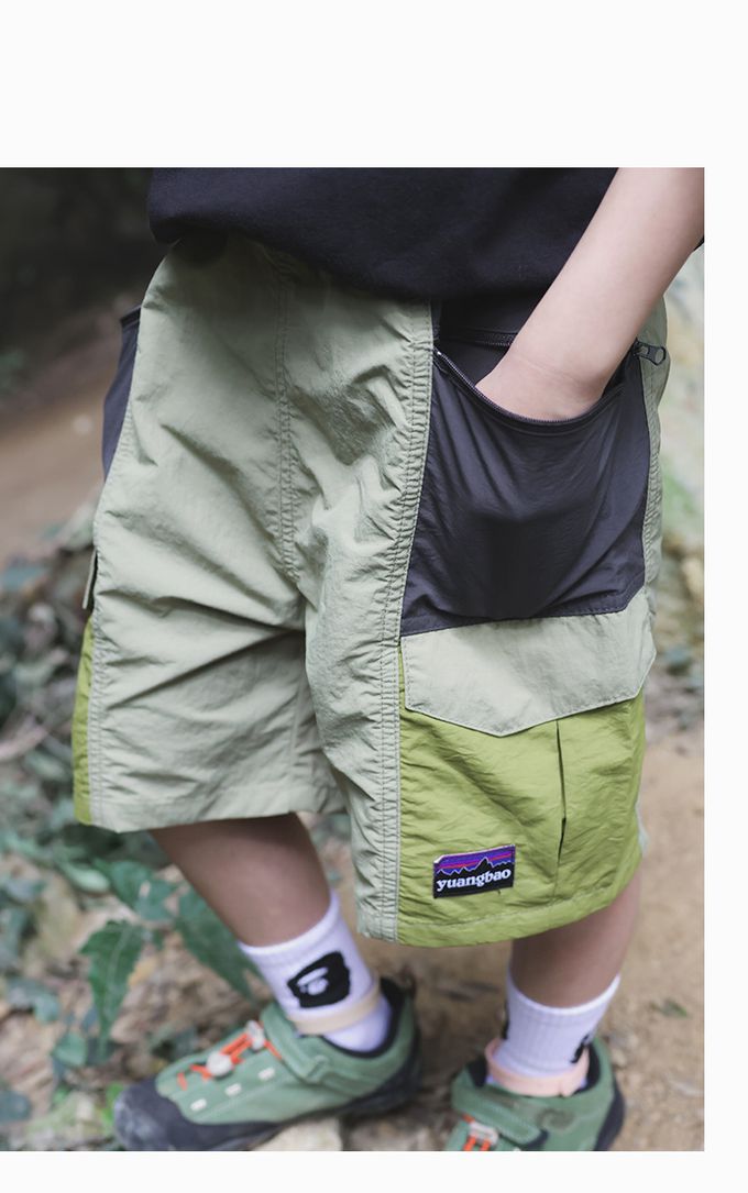 腰鬆緊速乾休閒五分褲-潮流拼色-灰x綠