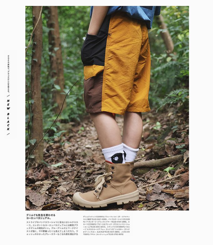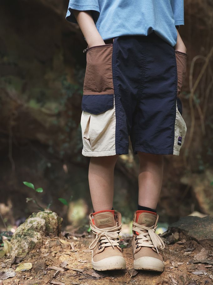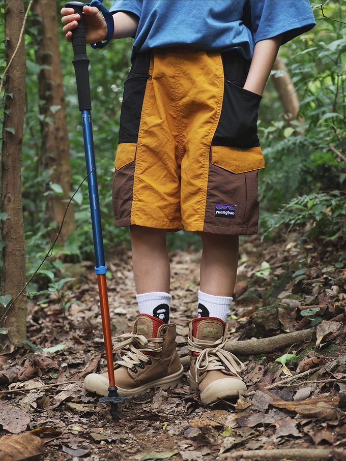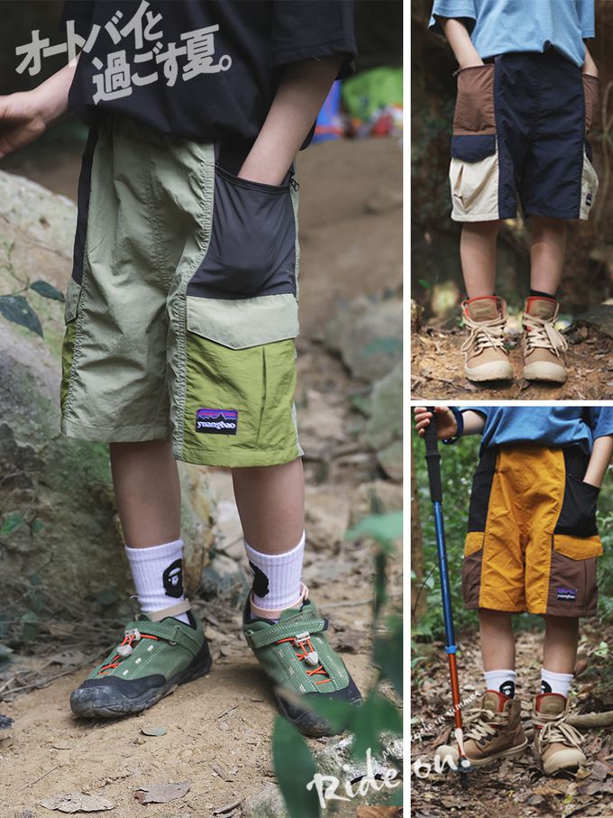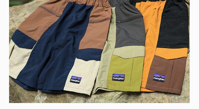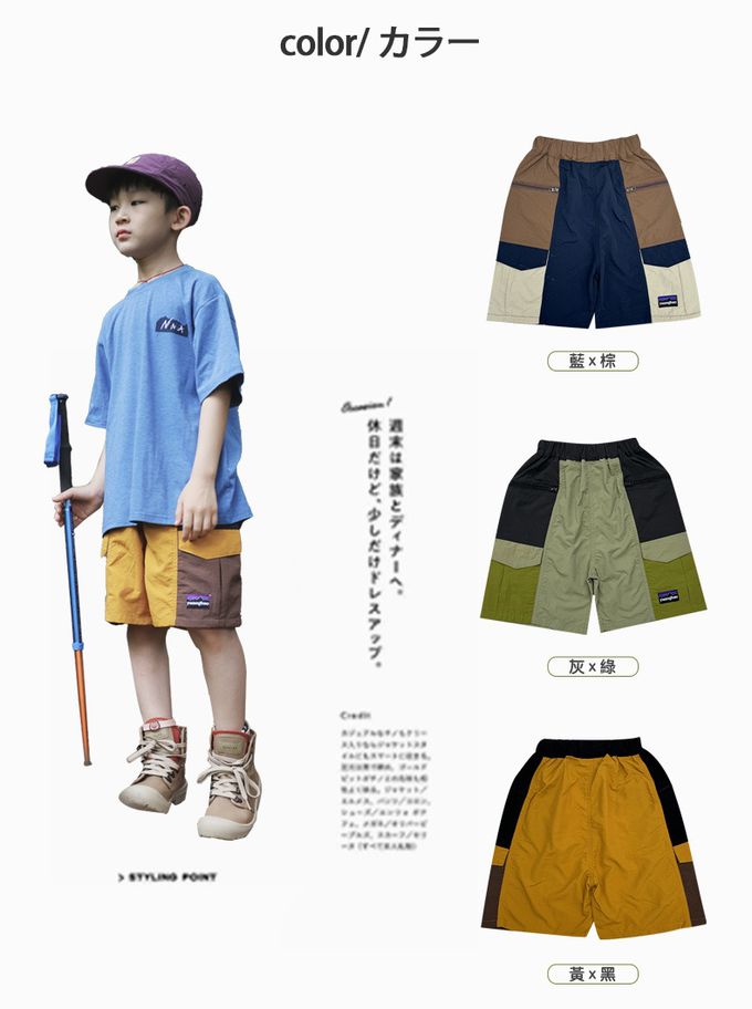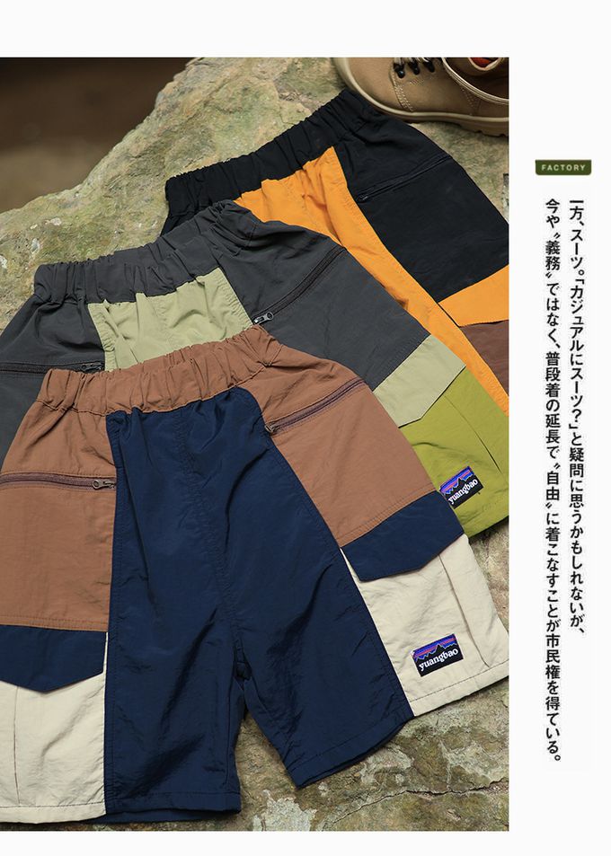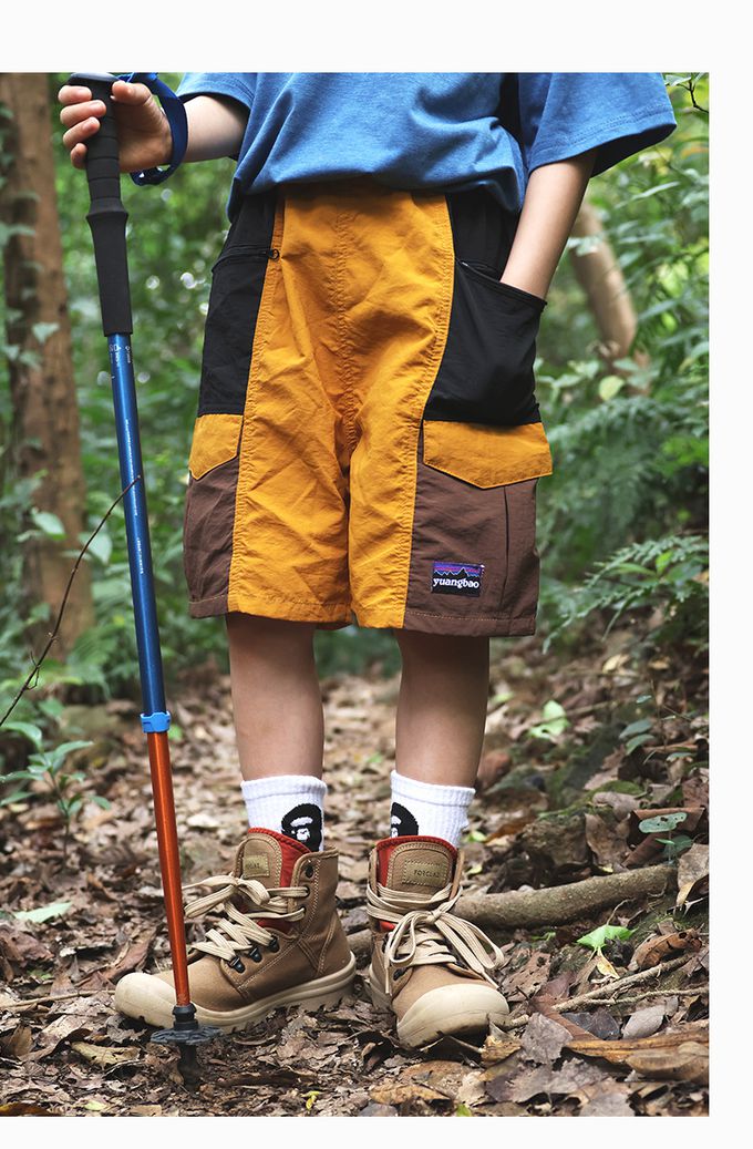 腰鬆緊速乾休閒五分褲-潮流拼色-黃x黑