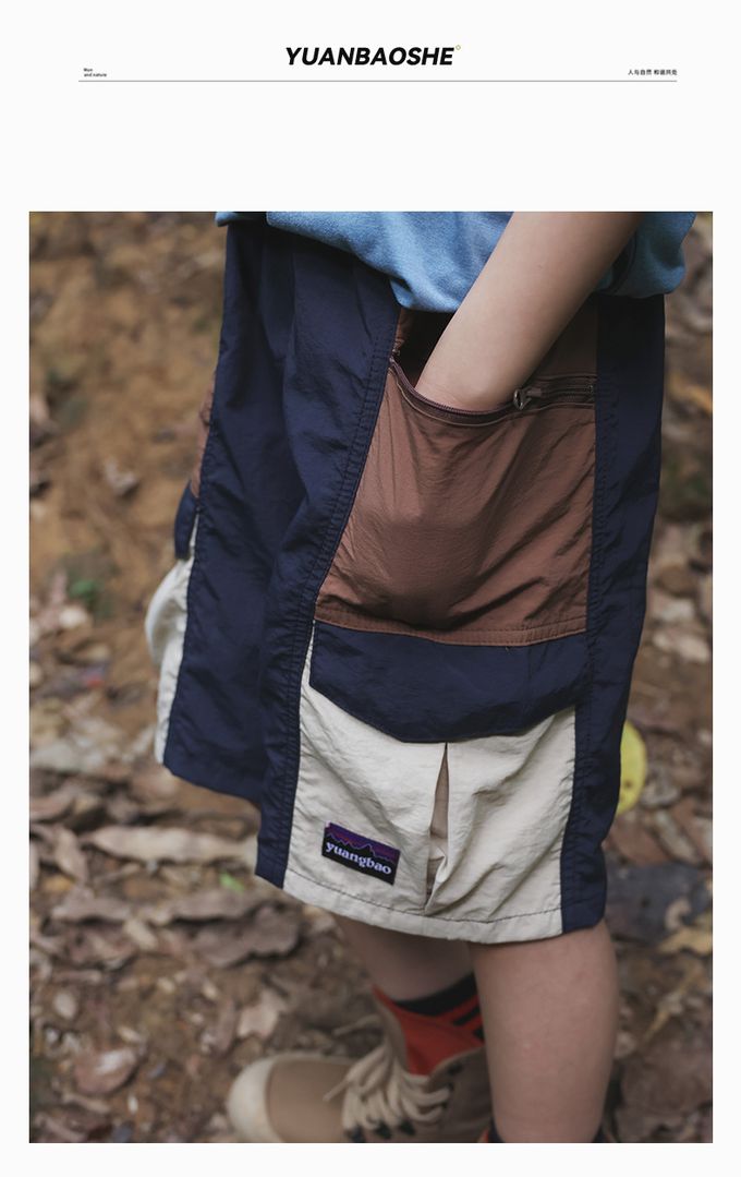 Y B S - 腰鬆緊速乾休閒五分褲-撞色口袋-紫色