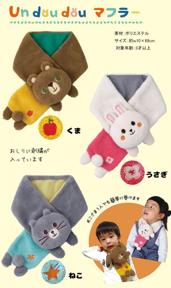 保暖小物當然少不了圍巾呀~~毛茸茸的圍巾不僅質感好,立體的動物造型真的好吸睛~設計簡單,讓小寶貝也能輕鬆自己圍好圍巾,就算爸比媽咪不在身邊也能自己做好保暖工作ξ( ✿>◡❛)