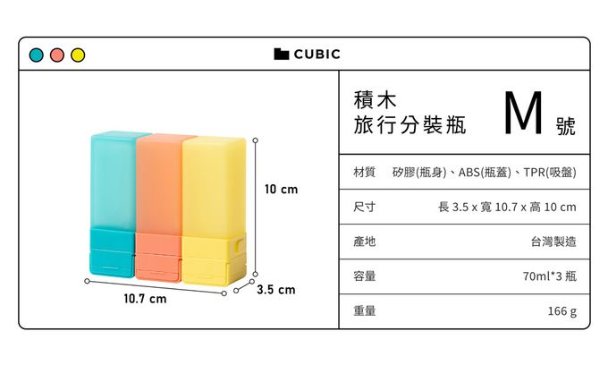 suzzi - 積木旅行分裝瓶 三件旅行組-繽紛 (M 70ml)