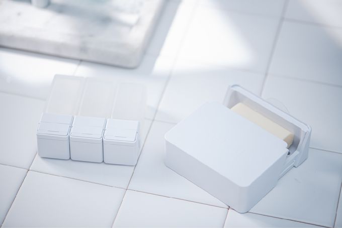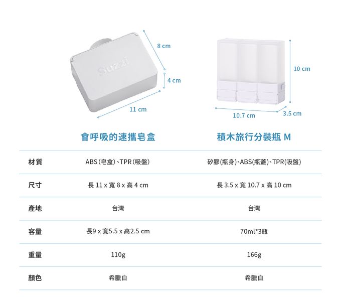 旅行沐浴禮盒組-(皂盒*1個+M號分裝瓶*3支)-希臘白