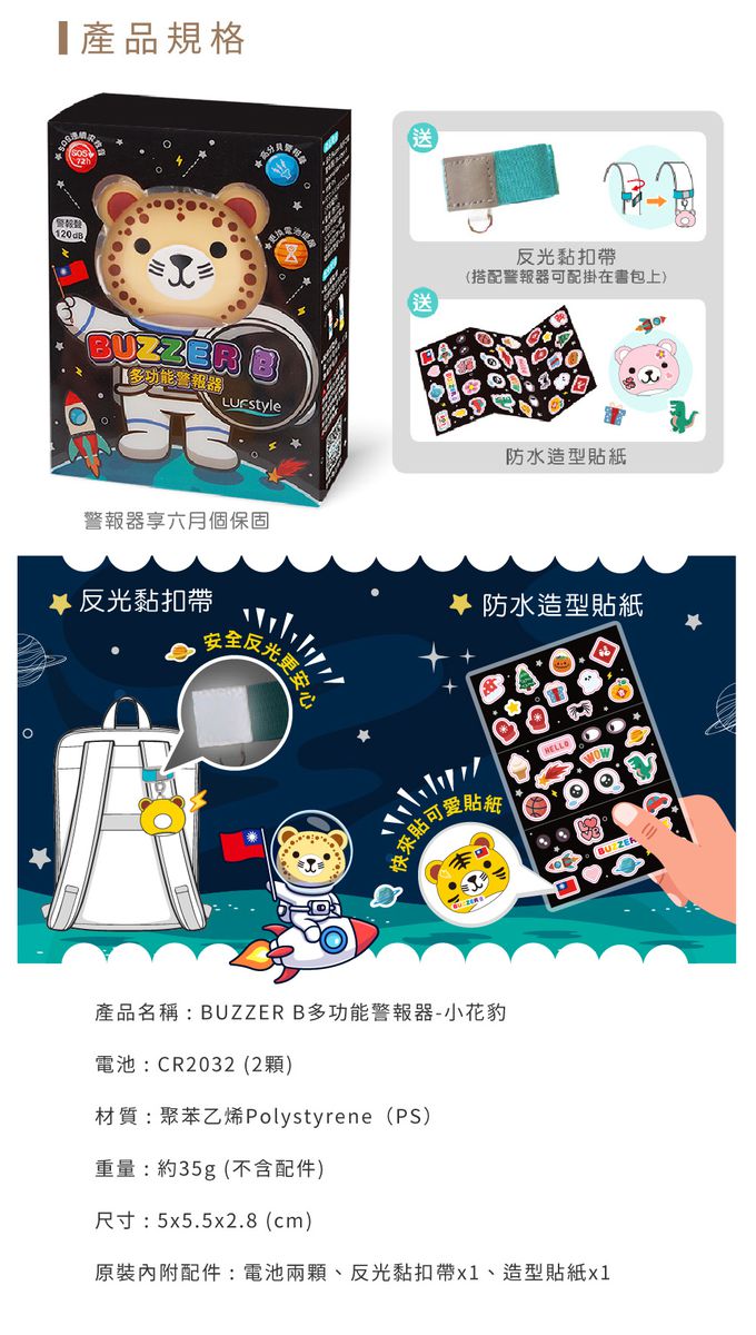 BUZZER B 多功能警報器-小花豹-地震求救神器