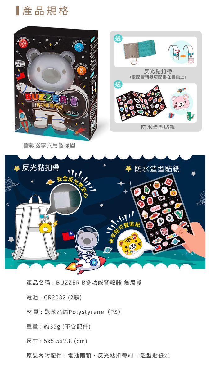 BUZZER B 多功能警報器-無尾熊-地震求救神器