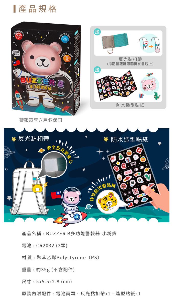 BUZZER B 多功能警報器-小粉熊-地震求救神器