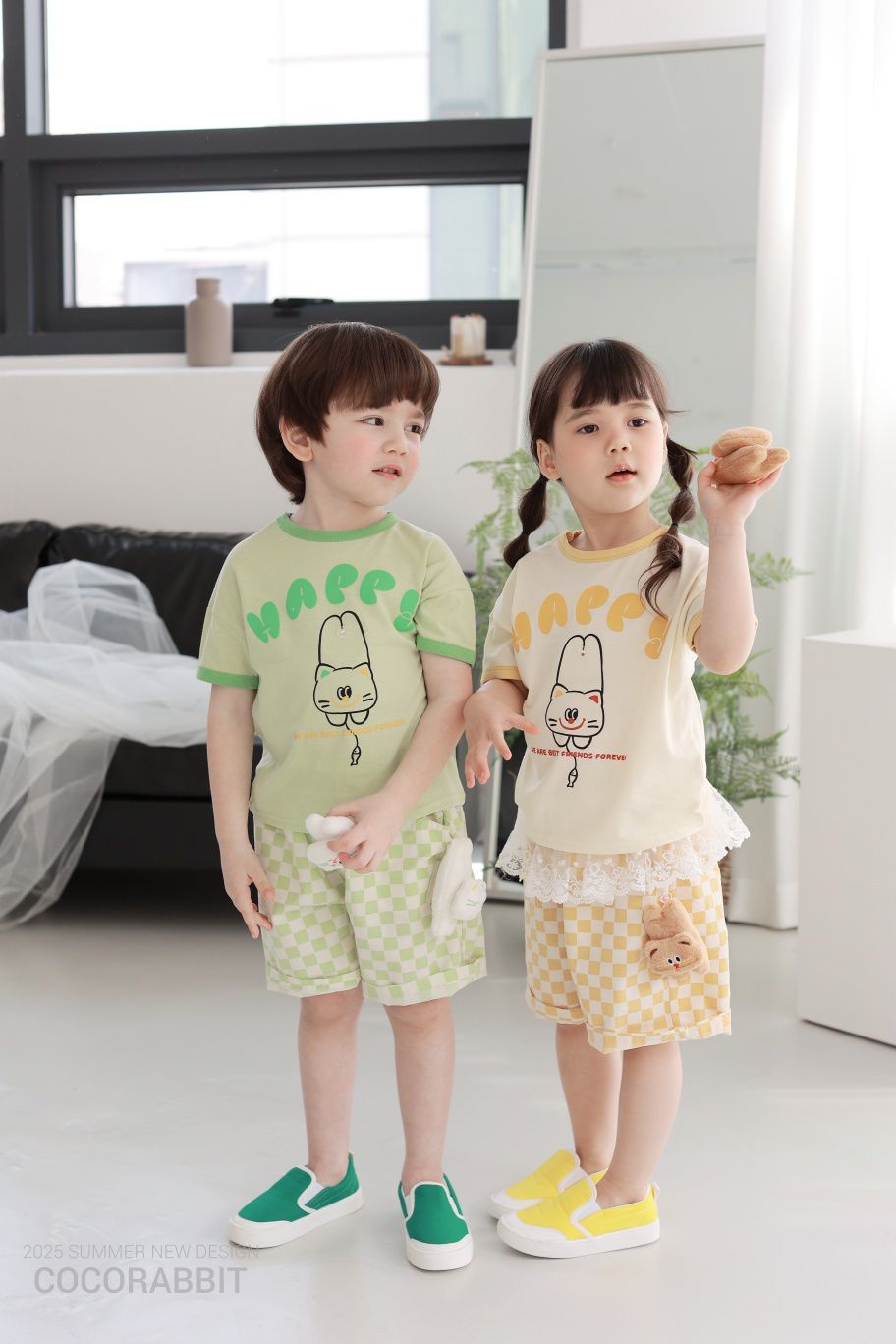 韓國 Coco Rabbit - (附貓咪裝飾)貓咪捕魚短袖上衣-淡黃